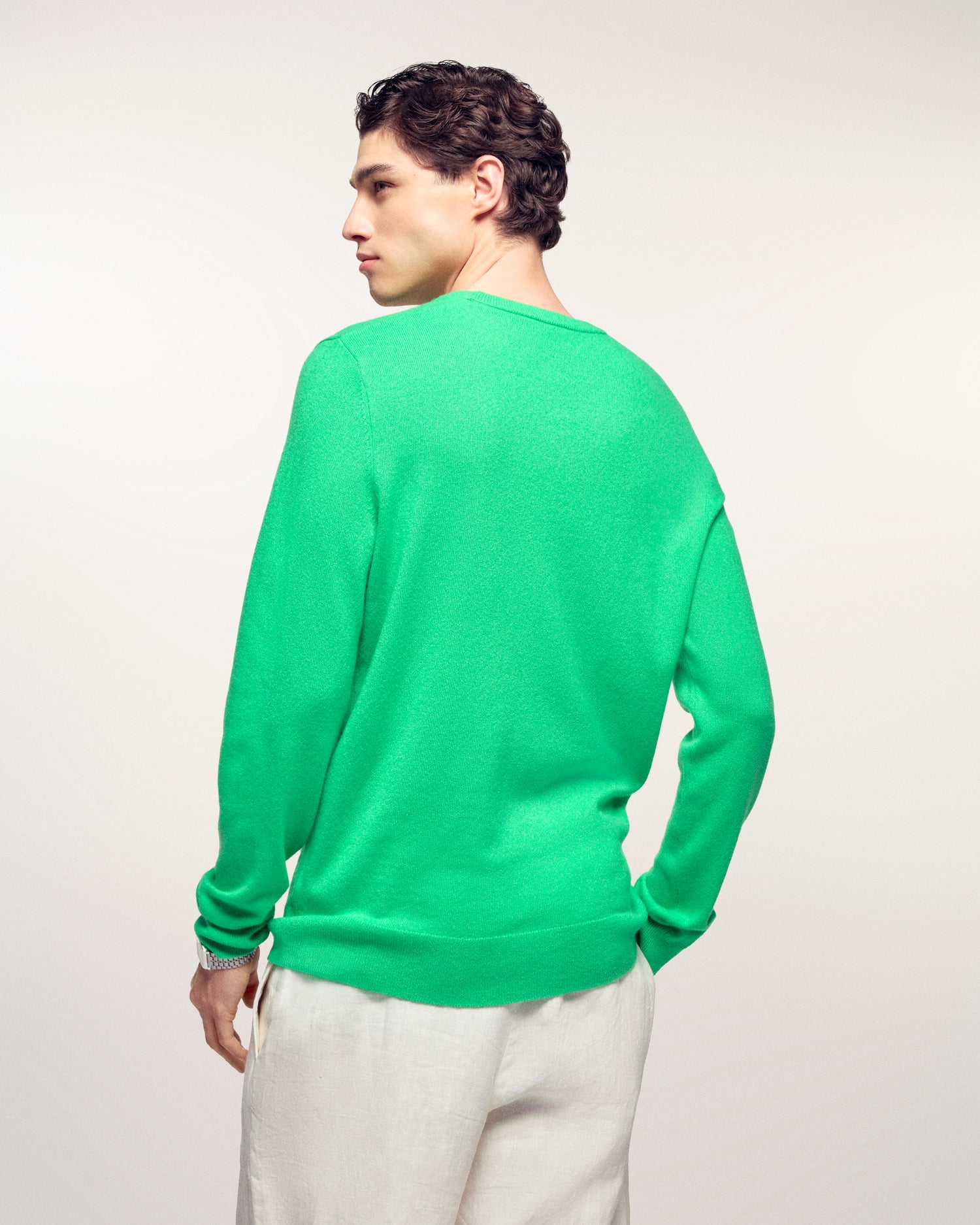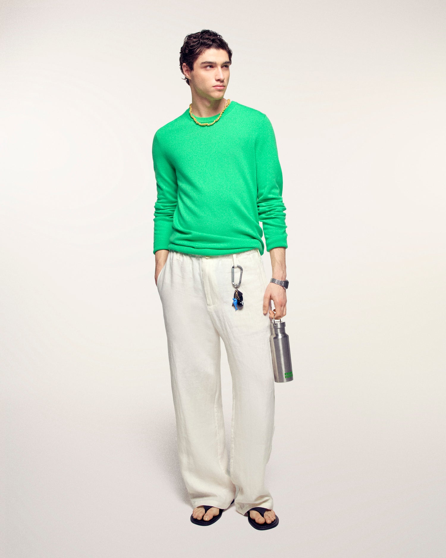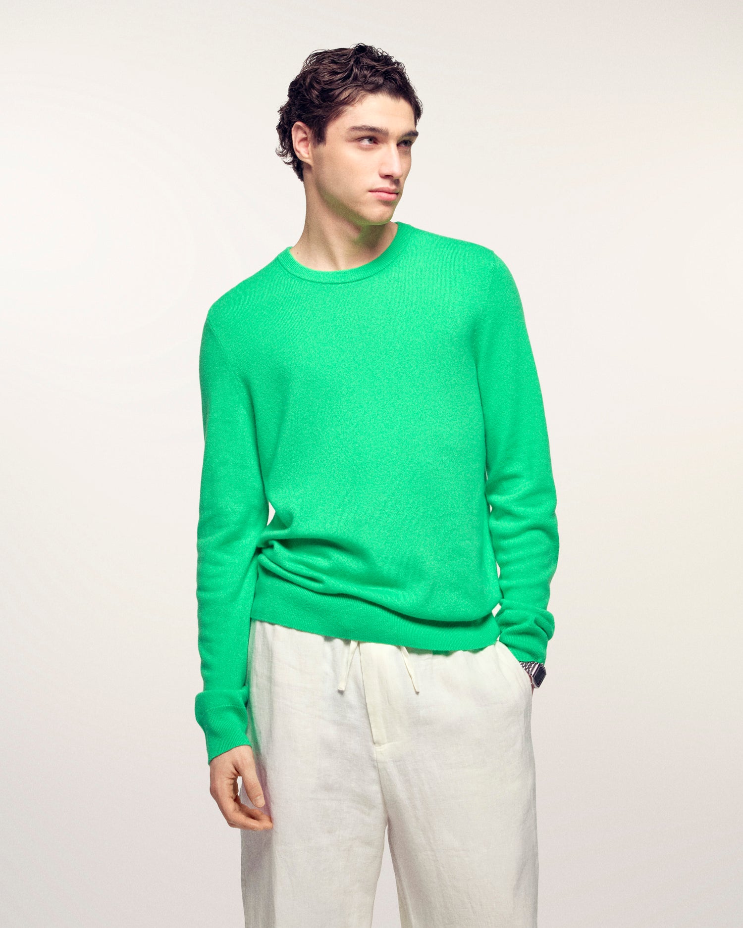 Un intemporel revisité dans un colorama inédit. Confectionné en cachemire 2 fils, ce pull dévoile une maille infiniment douce et une coupe impeccable. Muni d'un col rond, de manches longues et de bords côtelés, il s'associe à un pantalon droit pour un look structuré ou à un jean pour une tenue plus décontractée.