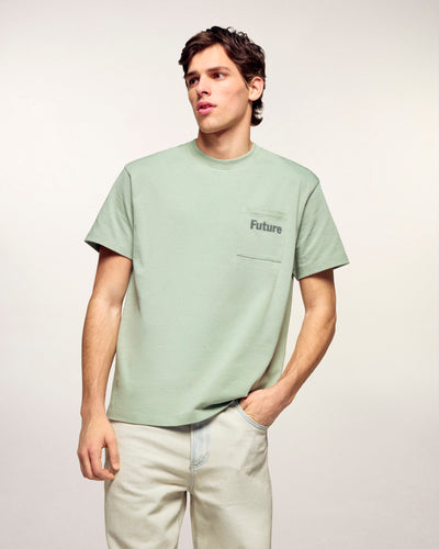 Indispensable de notre vestiaire, ce t-shirt à manches courtes mise sur la simplicité et le confort. Confectionné au Portugal dans un coton de qualité, il présente une coupe regular classique agrémentée d'une poche plaquée sur la poitrine, discrètement signée de notre message "FUTURE" flocké.