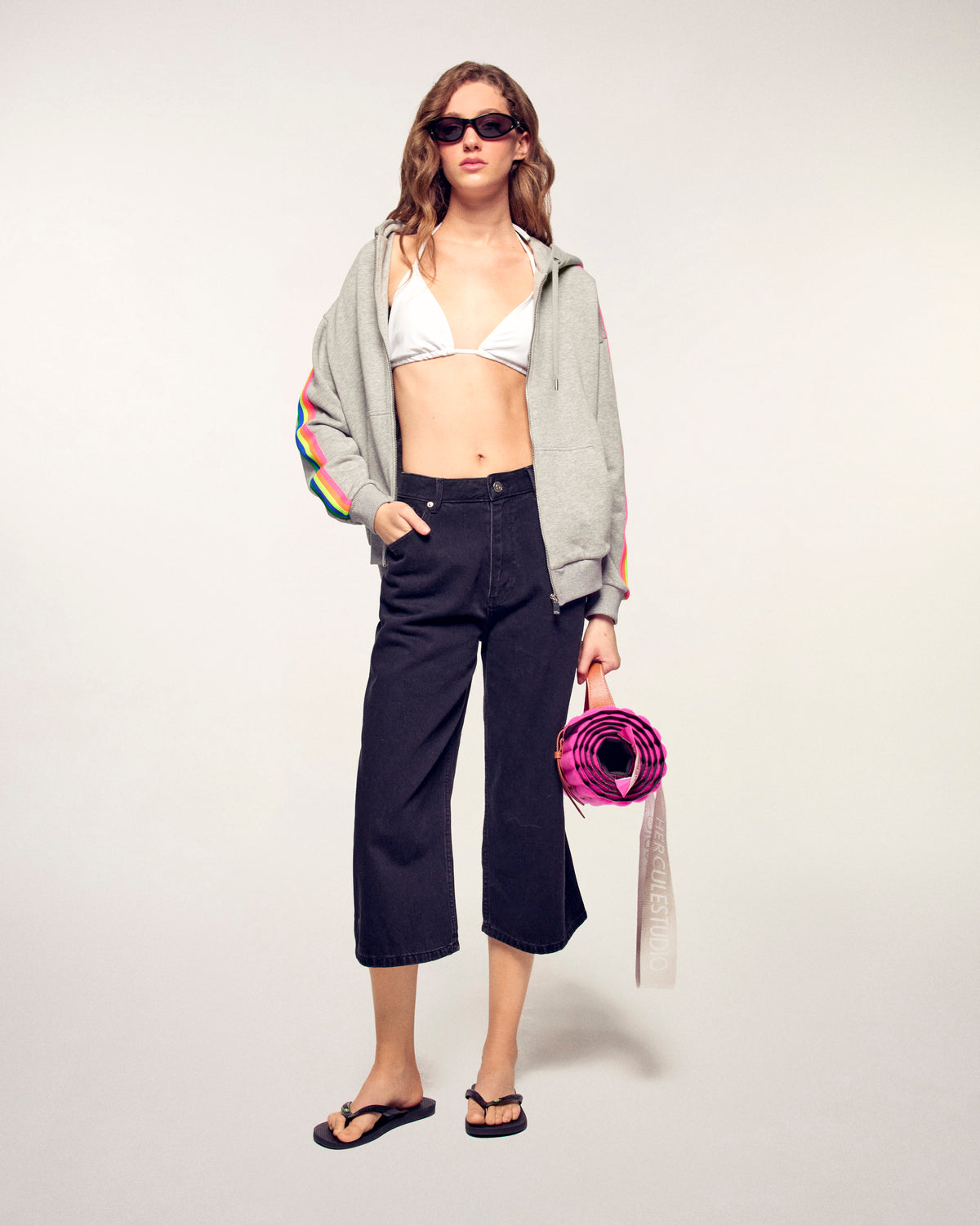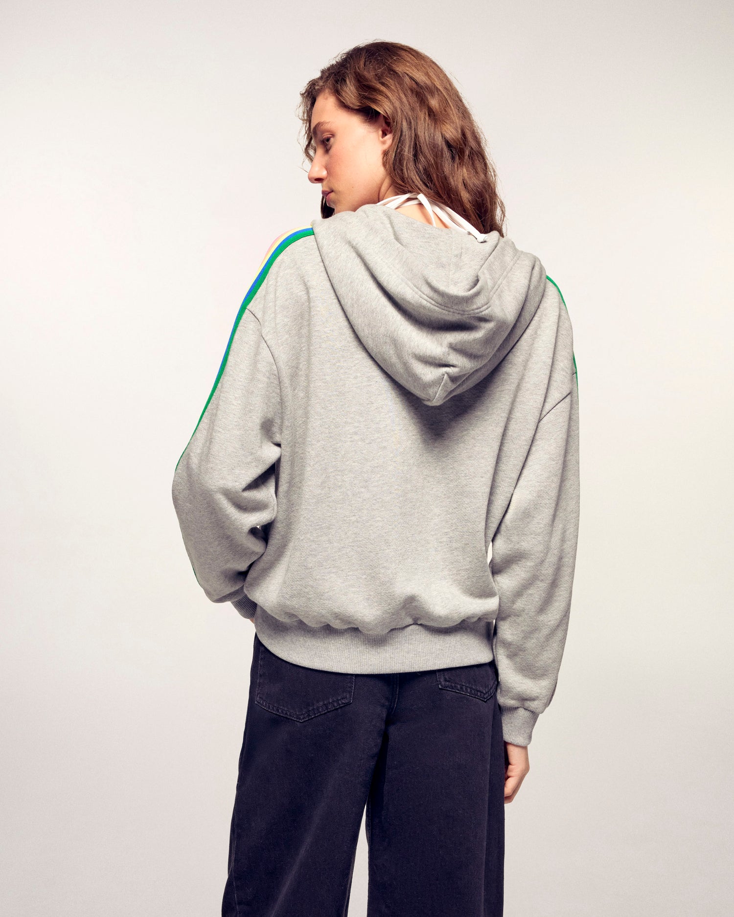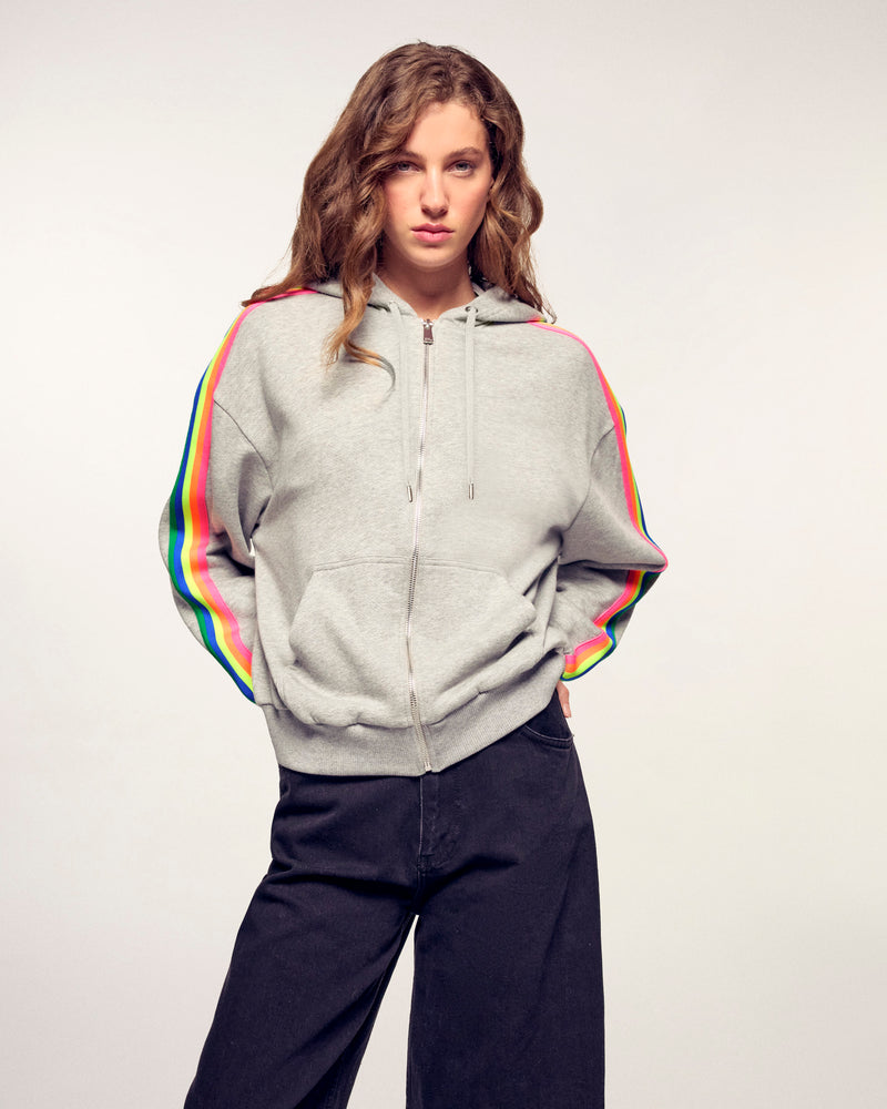 Un sweatshirt à capuche qui joue sur les contrastes pour une allure dynamique. Ce modèle en coton se distingue par ses bandes multicolores appliquées le long des manches, offrant un look sport et moderne au quotidien.