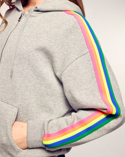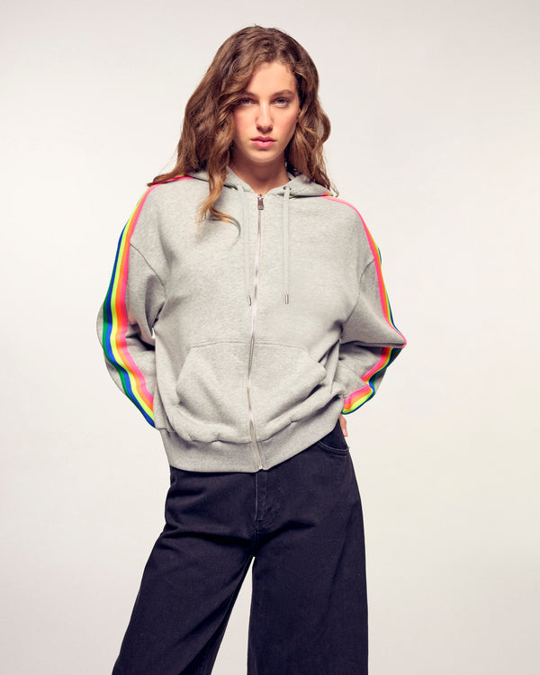 Sweatshirt Hoodie à Bandes - Coton - Gris Chiné Clair