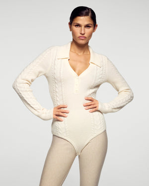 Body Manches Longues à Torsades - 100% Cachemire - Vérifié GCS - Ecru