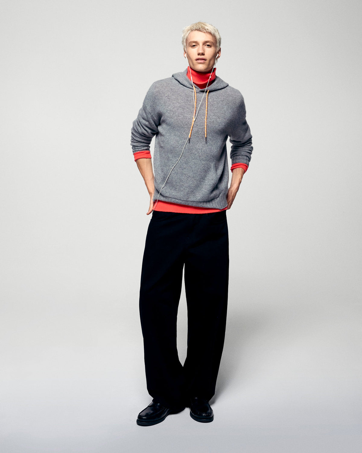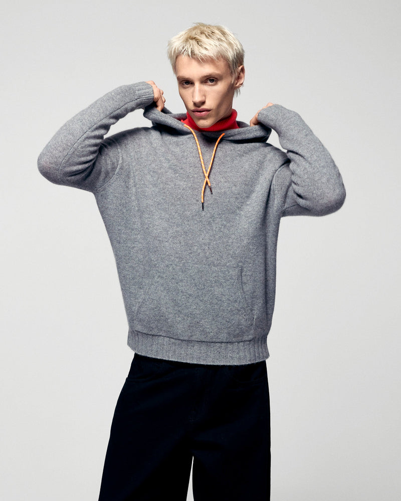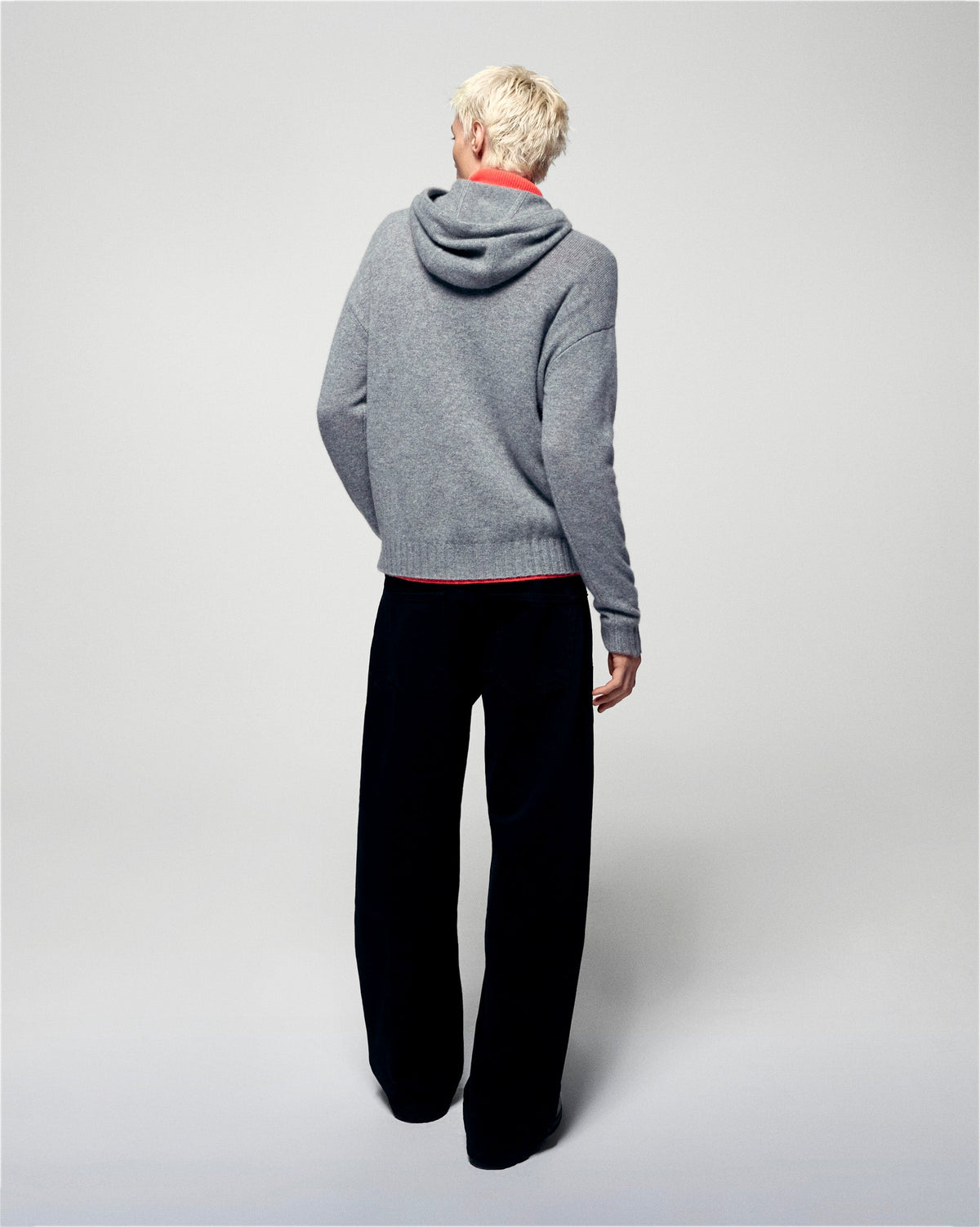 L'incontournable pull hoodie se réinvente cette saison orné de liserés contrastés. Confectionné en cachemire, il dévoile une capuche à cordons, des manches longues et des bords côtelés.