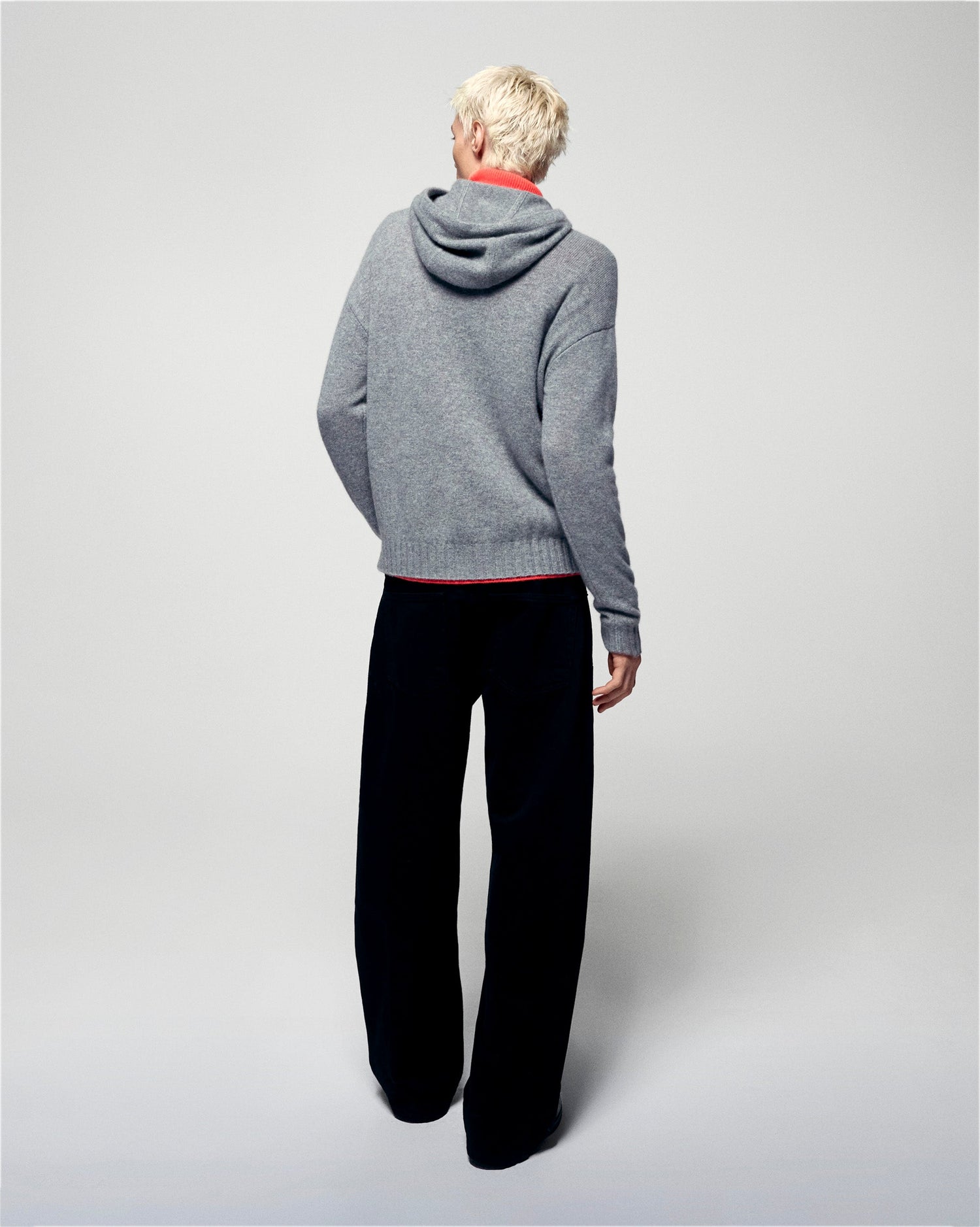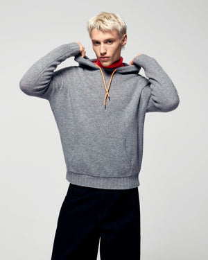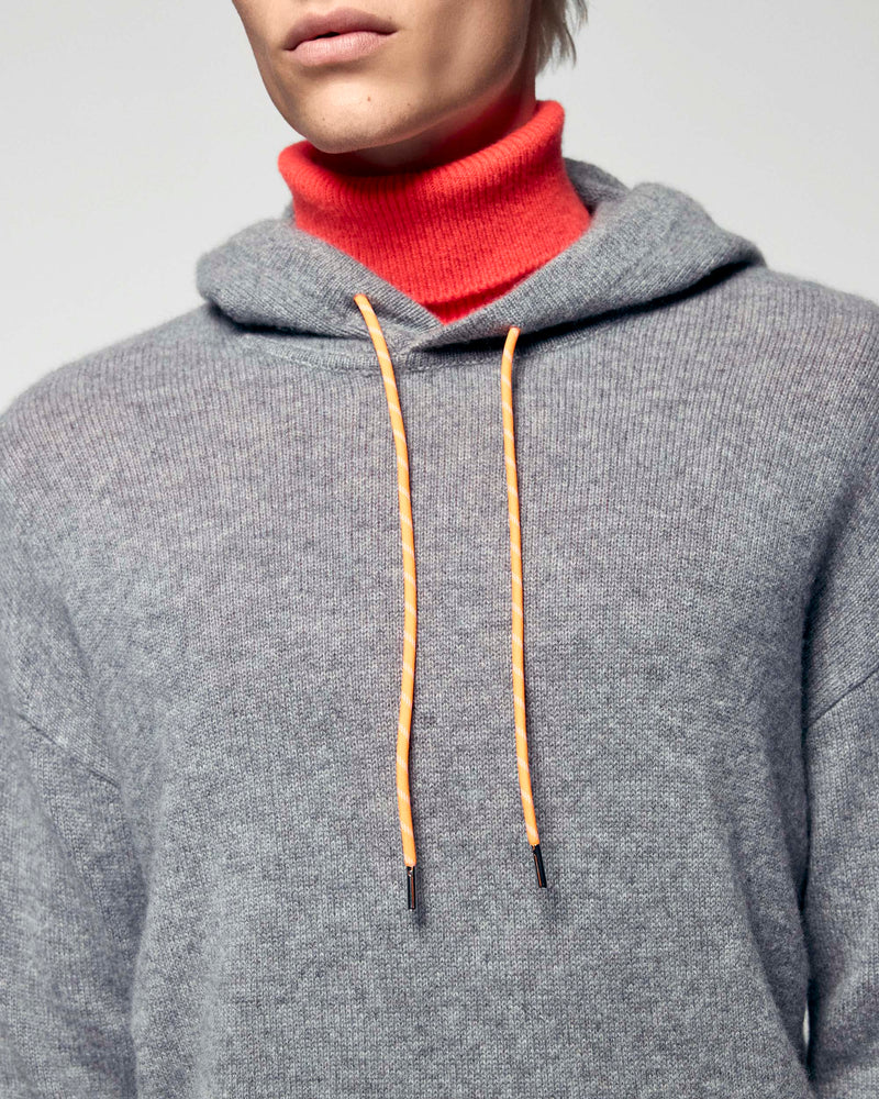 Pull Hoodie Cordons Contrastés - 100% Cachemire - Vérifié GCS - Gris Chiné Foncé