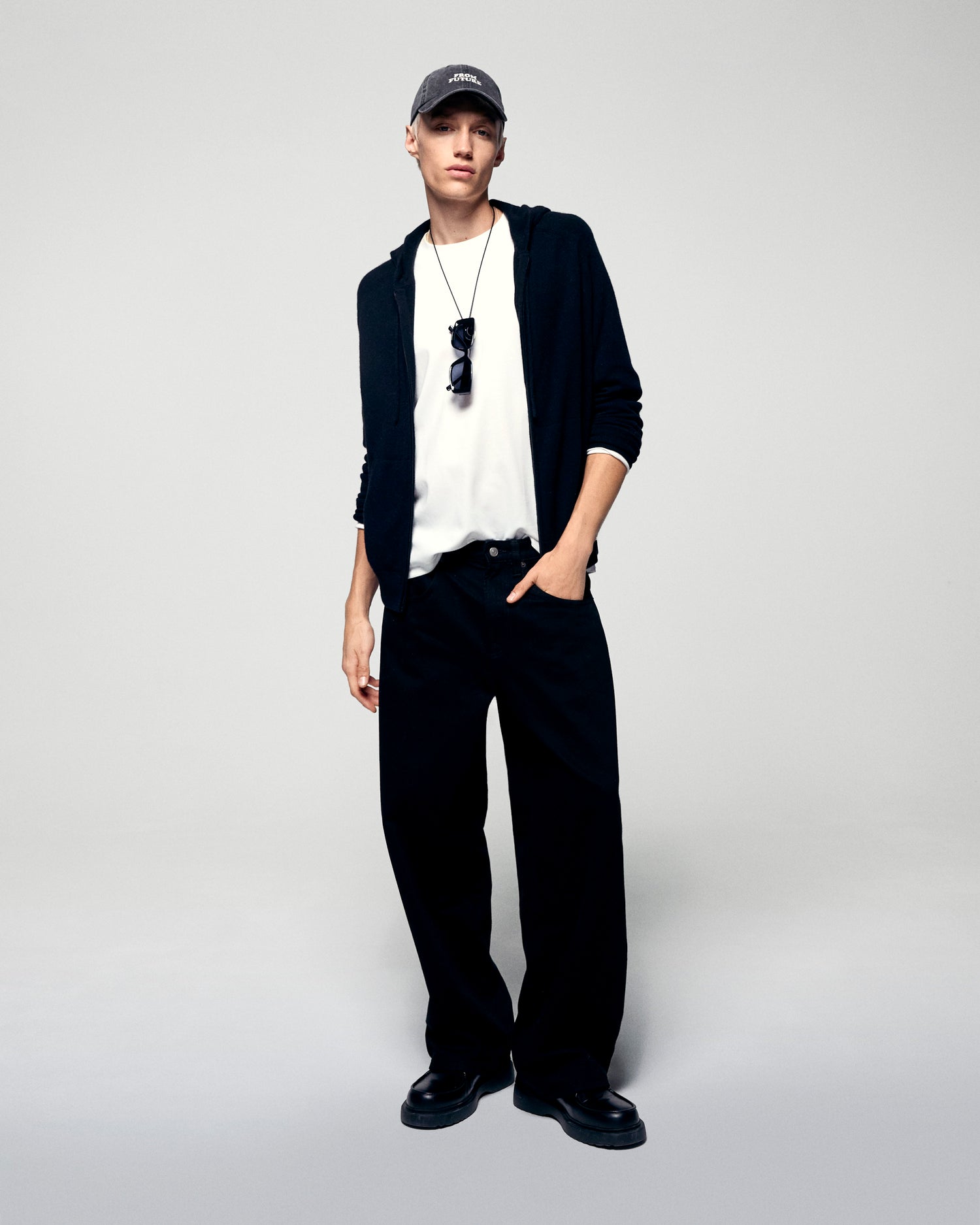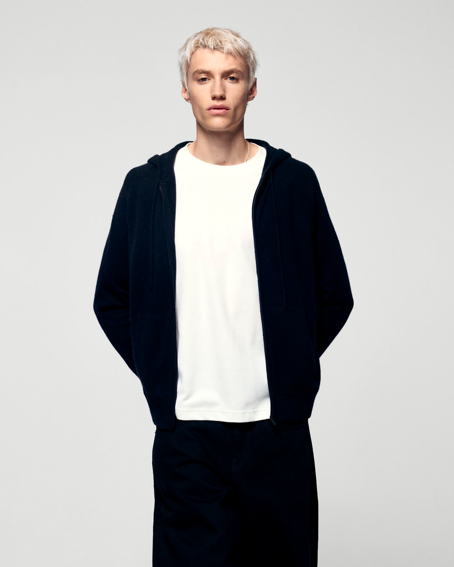 Pull Hoodie Zippé Basique - 100% Cachemire - Vérifié GCS - Noir