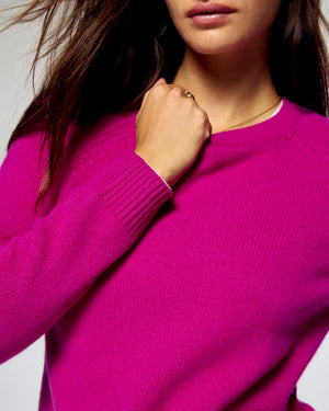 Décliné dans un colorama inédit, ce pull en cachemire s'impose comme un indispensable de votre vestiaire. Sa coupe courte et ajustée, rehaussée d'un col rond et de manches longues raglan, souligne avec élégance toutes les silhouettes. À porter sans modération, il se mixe à un jean droit ou une jupe fluide.