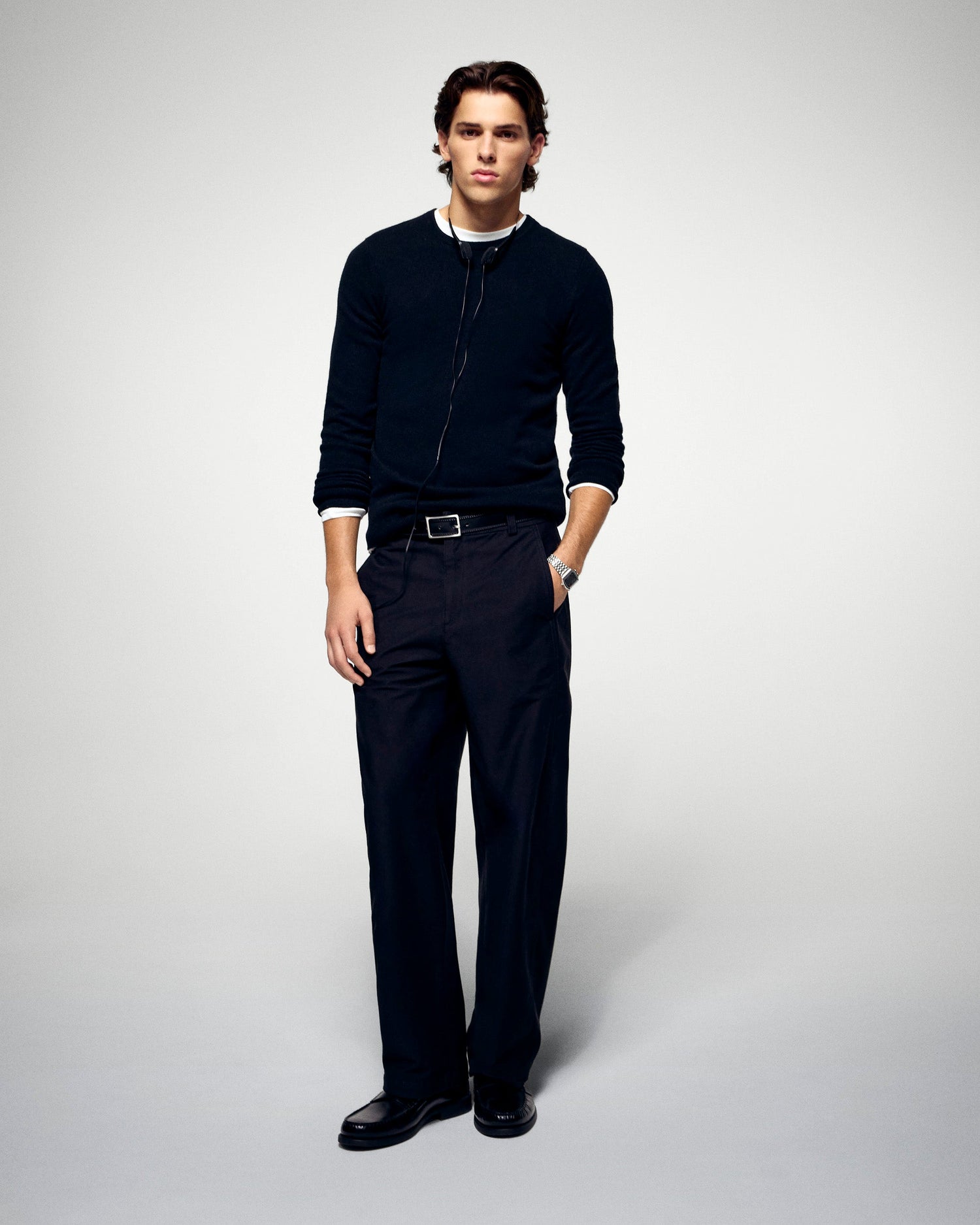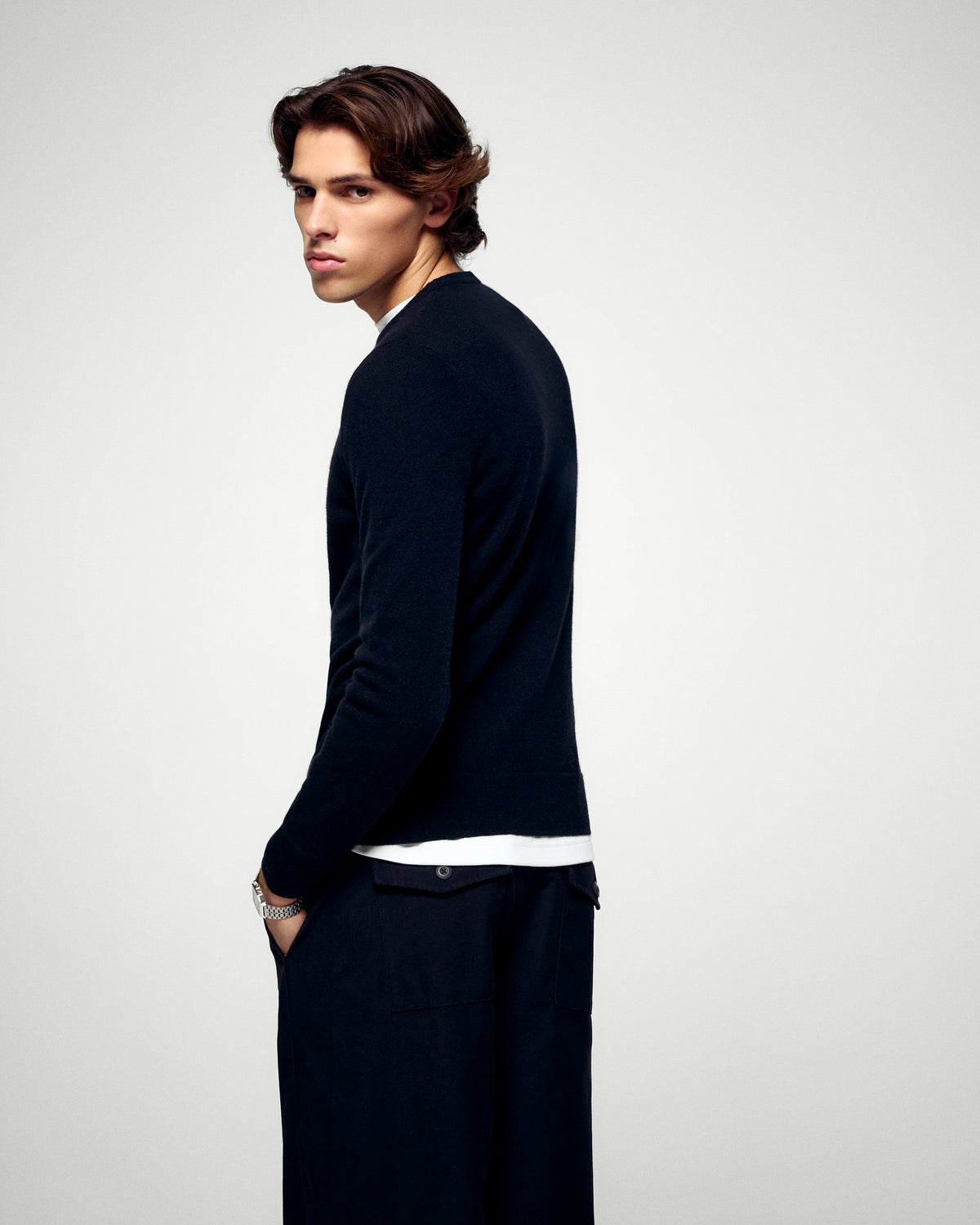 Un intemporel revisité dans un colorama inédit. Confectionné en cachemire 2 fils, ce pull dévoile une maille infiniment douce et une coupe impeccable. Muni d'un col rond, de manches longues et de bords côtelés, il s'associe à un pantalon droit pour un look structuré ou à un jean pour une tenue plus décontractée.