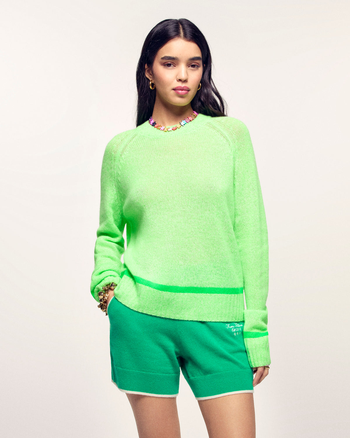 Le pull à la texture riche et douce. Confectionné en Cachemire 4 fils, il est tricoté en fil mouliné pour un bel effet chiné et texturé. Sa coupe oversize est modernisée par des bandes de finitions tricotées contrastées au bas du corps et des manches, pour un look graphique et tendance.