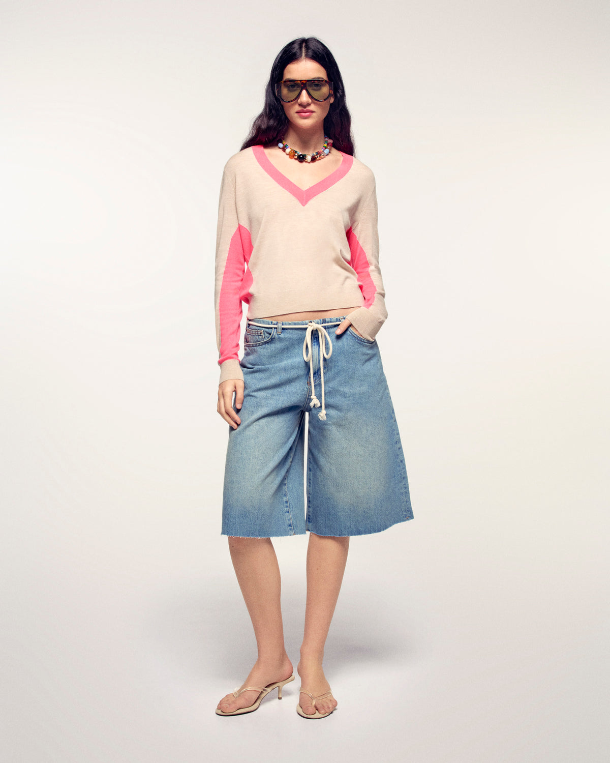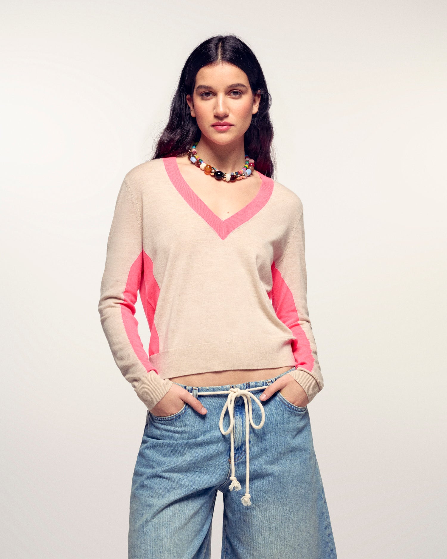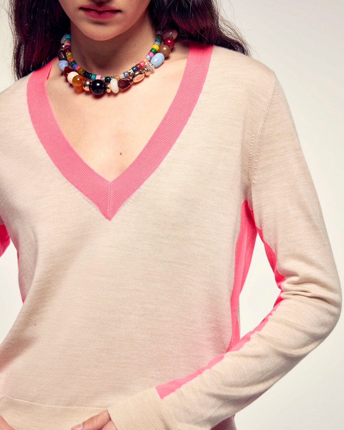 - Col V avec bord-côte fin contrasté