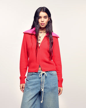 Le gilet ultra-tendance et graphique. Confectionné en Cachemire 4 fils, il offre une maille dense et douce. Sa coupe courte et regular est dynamisée par un col large et une fermeture éclair centrale. Ce col oversize apporte une touche de style sophistiqué.