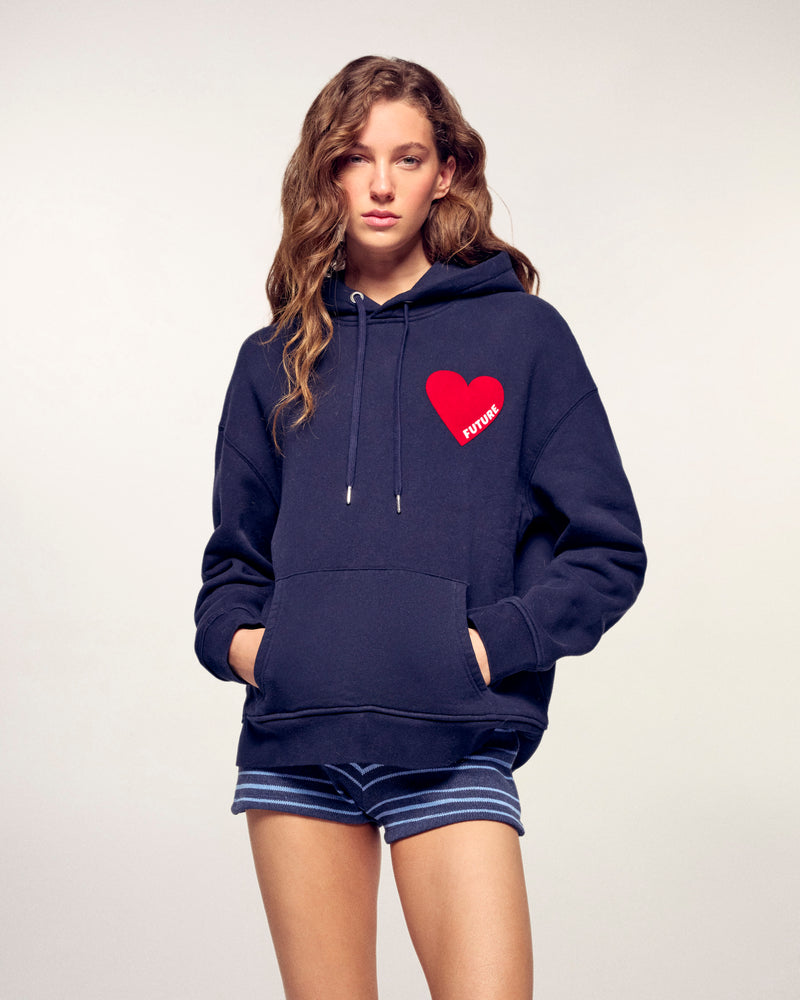 Muni d'une capuche à cordons, d'une poche avant et de manches longues, ce sweatshirt hoodie en coton dévoile un cœur floqué "FUTURE" sur la poitrine.