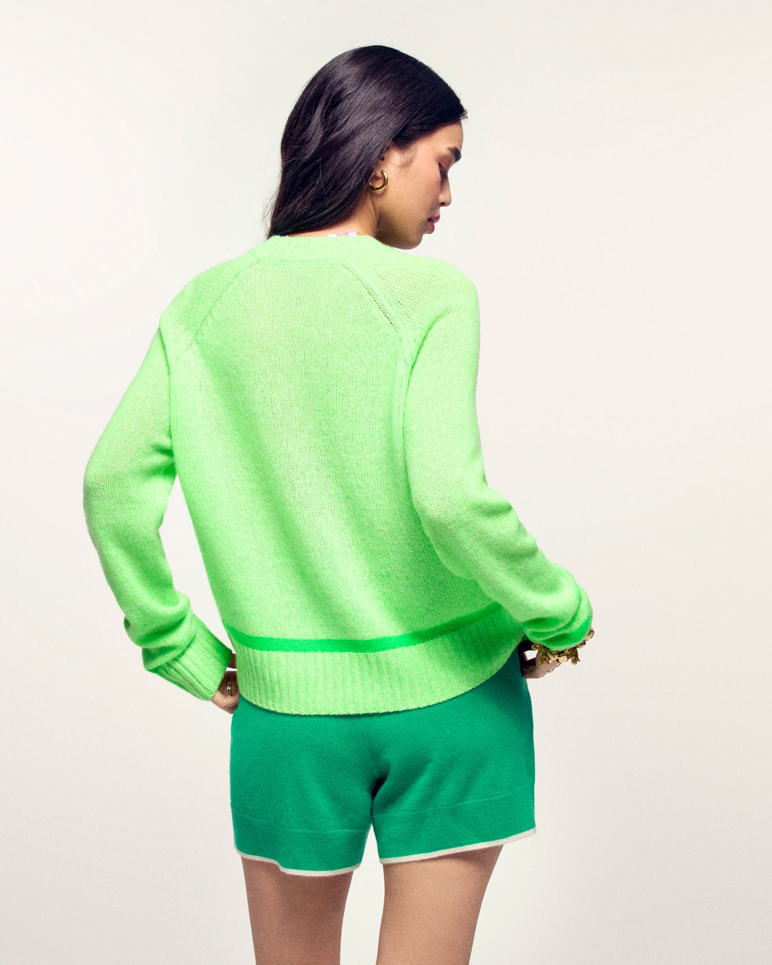 Le pull à la texture riche et douce. Confectionné en Cachemire 4 fils, il est tricoté en fil mouliné pour un bel effet chiné et texturé. Sa coupe oversize est modernisée par des bandes de finitions tricotées contrastées au bas du corps et des manches, pour un look graphique et tendance.