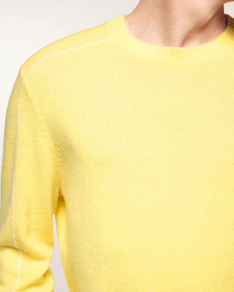 Confectionné en Cachemire 2 fils, ce pull assure un confort premium. Sa coupe regular intemporelle est twistée par un liseré contrasté sur les manches et les côtés, pour un look sportif et graphique.