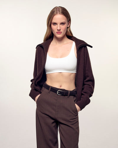 Le gilet essentiel qui allie épaisseur et style décontracté. Confectionné en Cachemire 4 fils, il offre une maille dense et douce. Sa coupe courte et regular est dynamisée par un col large et une fermeture éclair.