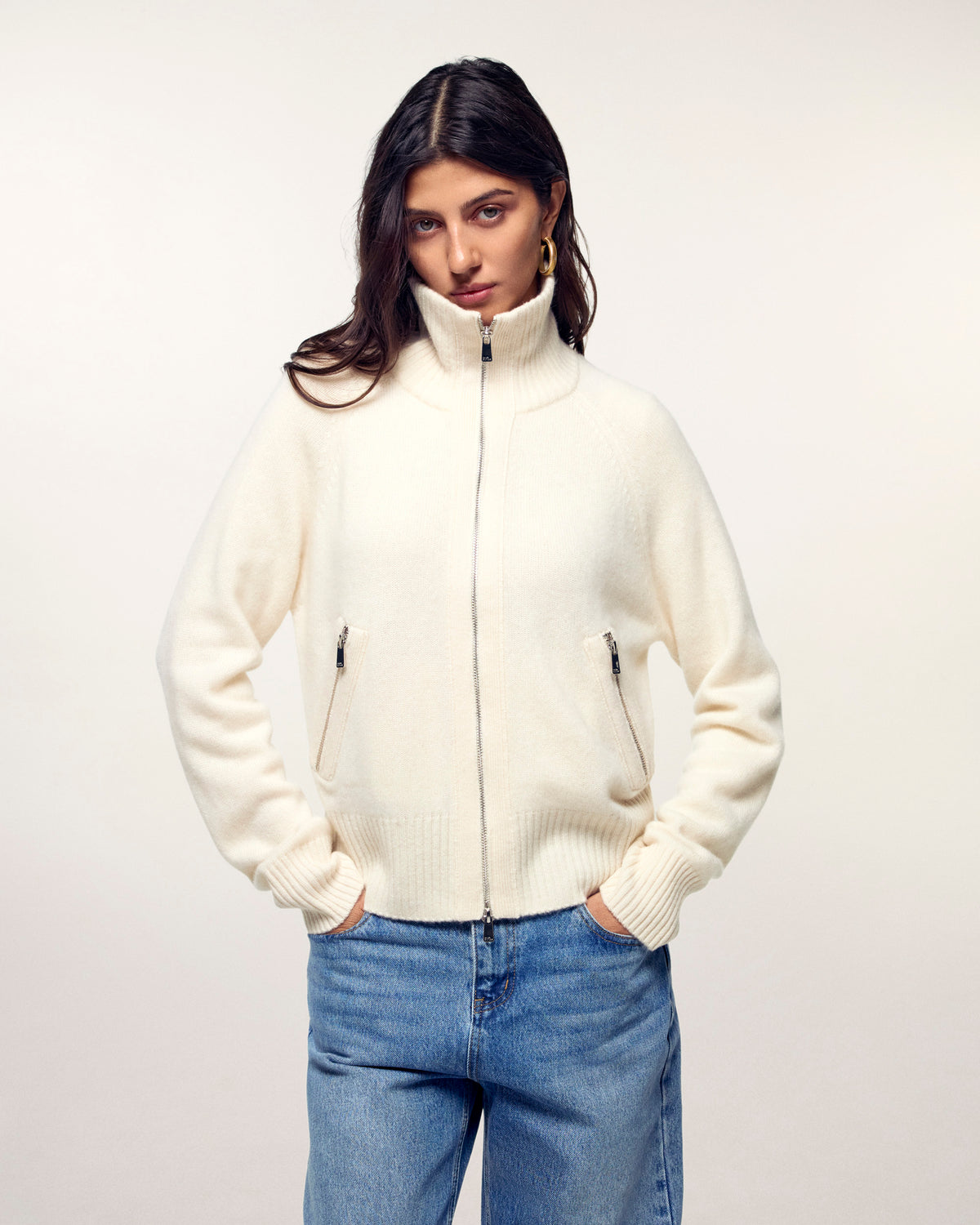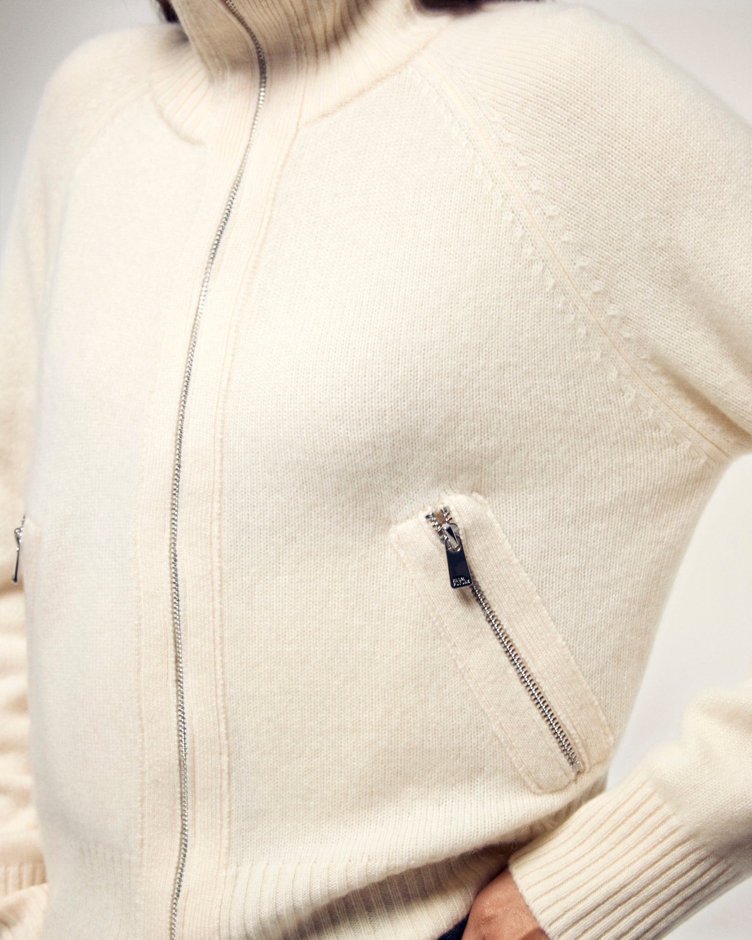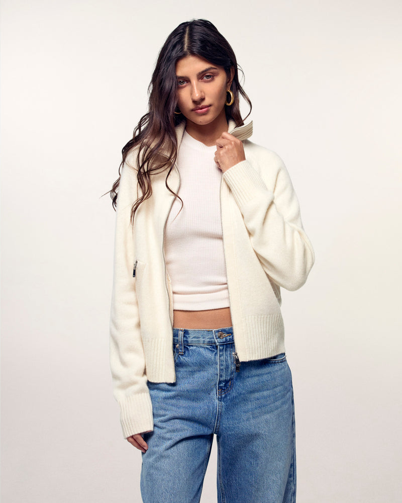 Pull Gilet Zippé Double Curseur - 100% Cachemire - Vérifié GCS - Ecru