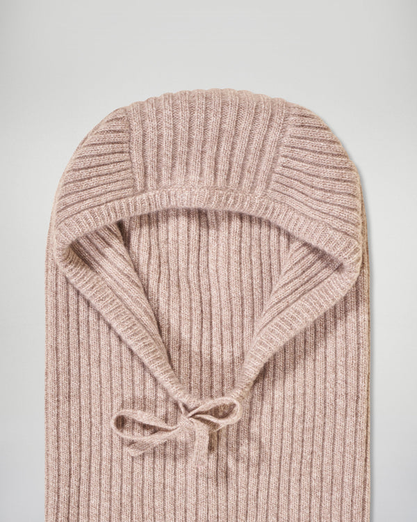Cagoule Regular à Côtes - 100% Cachemire - Vérifié GCS - Taupe Mouliné