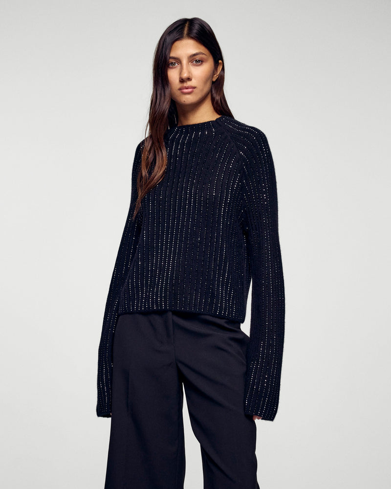 - Pull strassé en cachemire côtelé 4 fils certifié GCS® Femme