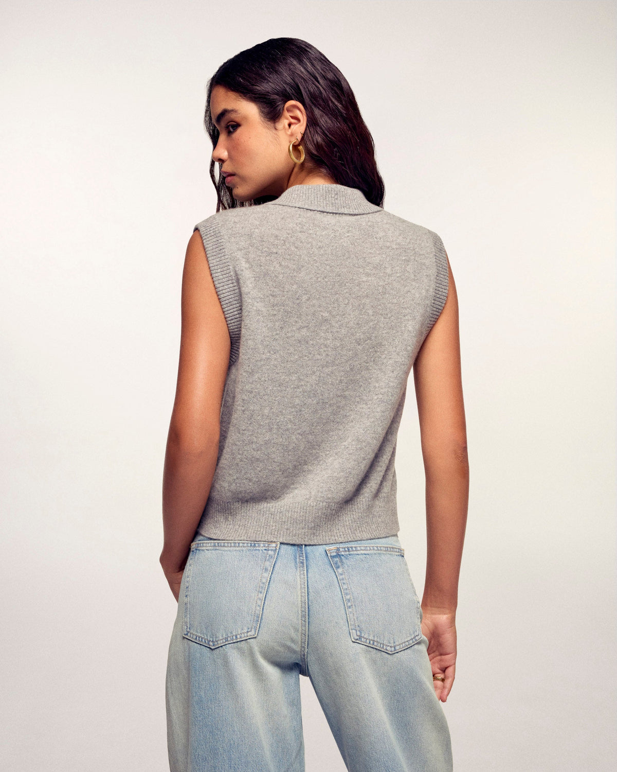 - Pull sans manches col polo en 100% cachemire 2 fils certifié GCS