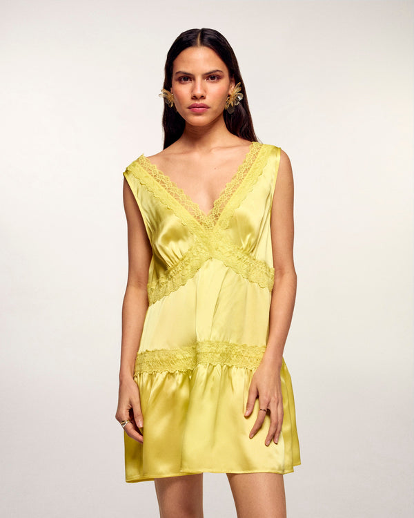 Robe Courte à Dentelle - Soie - Sunset Yellow