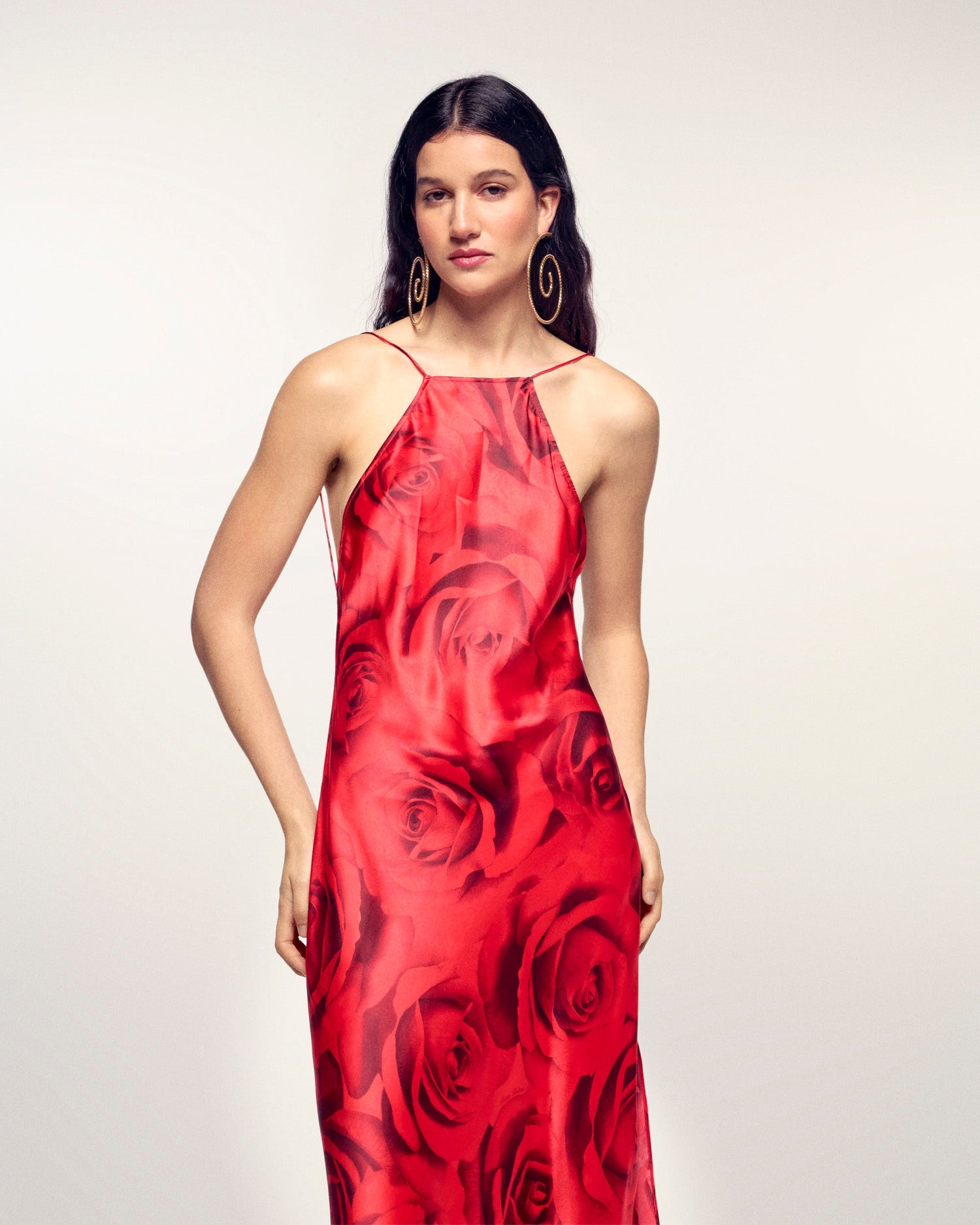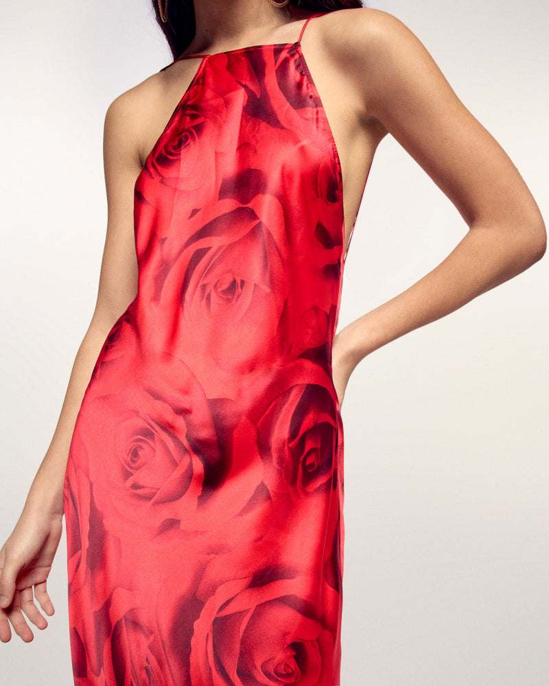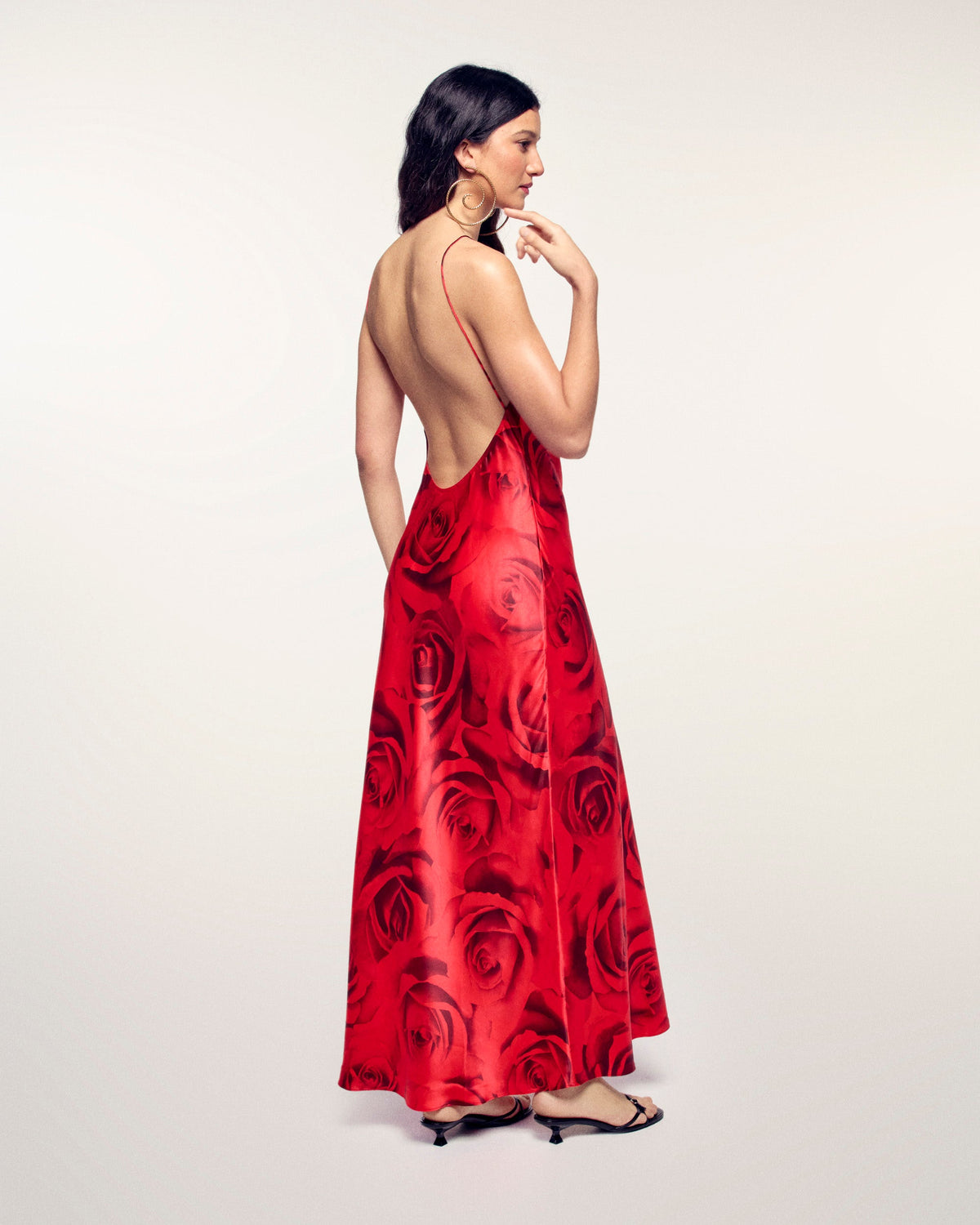 Robe Longue Bretelles Dos Nu - Soie - Wild Rose Heat