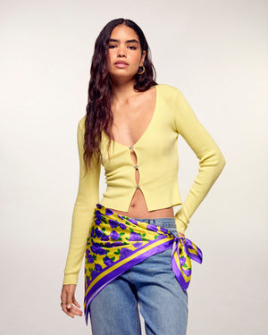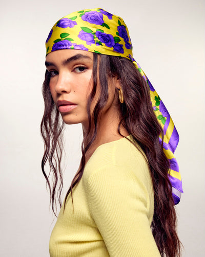 Un accessoire dynamique et féminin pour parfaire chaque silhouette. Confectionné en pur satin de soie, ce foulard se pare d'un imprimé floral éclatant avec une large bordure contrastée. Sa matière noble et brillante offre un toucher d'une douceur exceptionnelle et un tomber fluide.