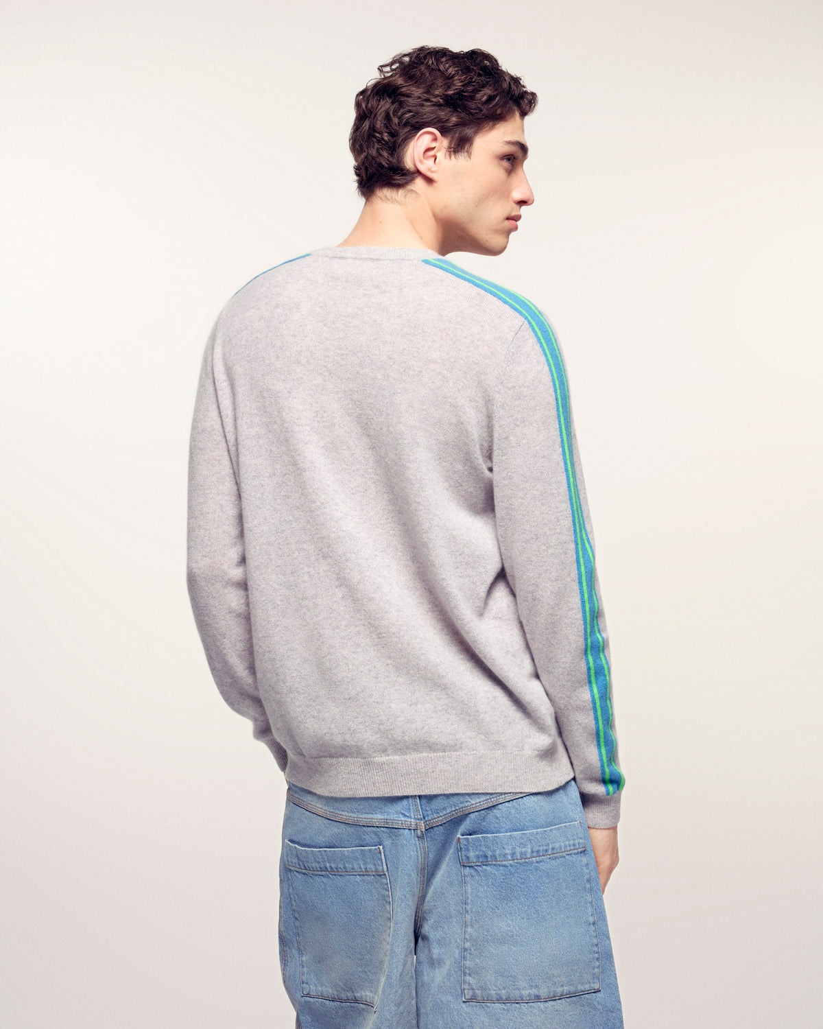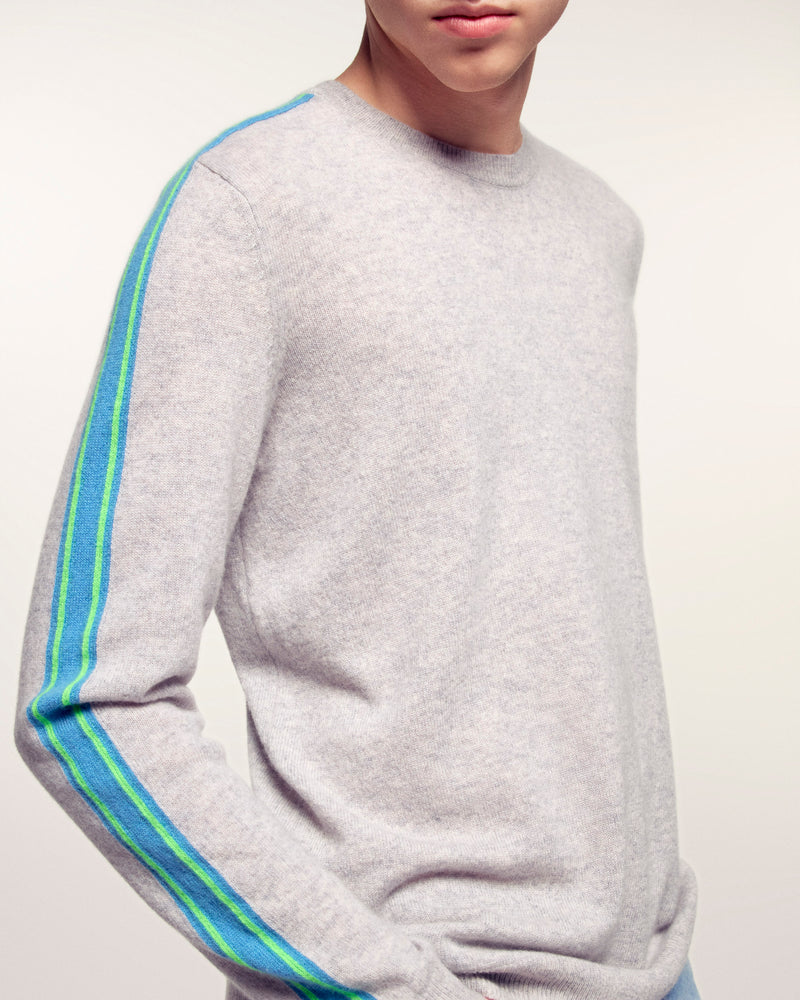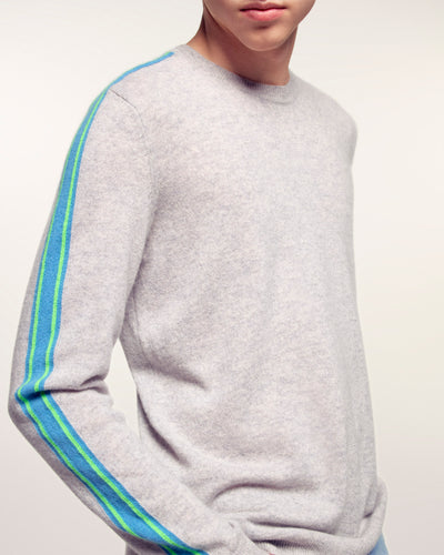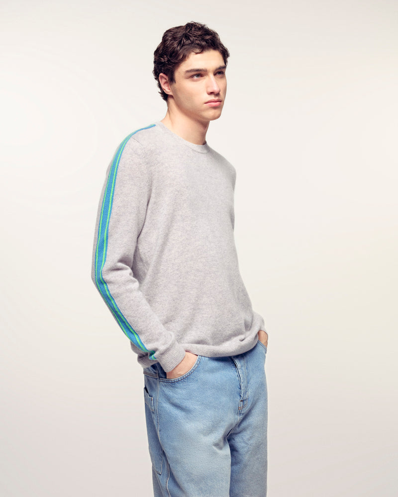 Une pièce essentielle du vestiaire masculin rehaussée par des détails dynamiques. Ce pull en cachemire se pare de bandes colorées le long des manches pour une allure sport-chic résolument moderne.