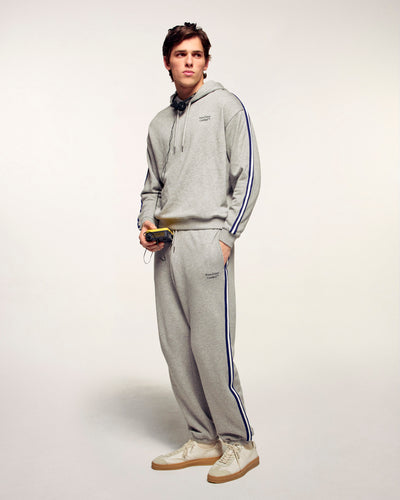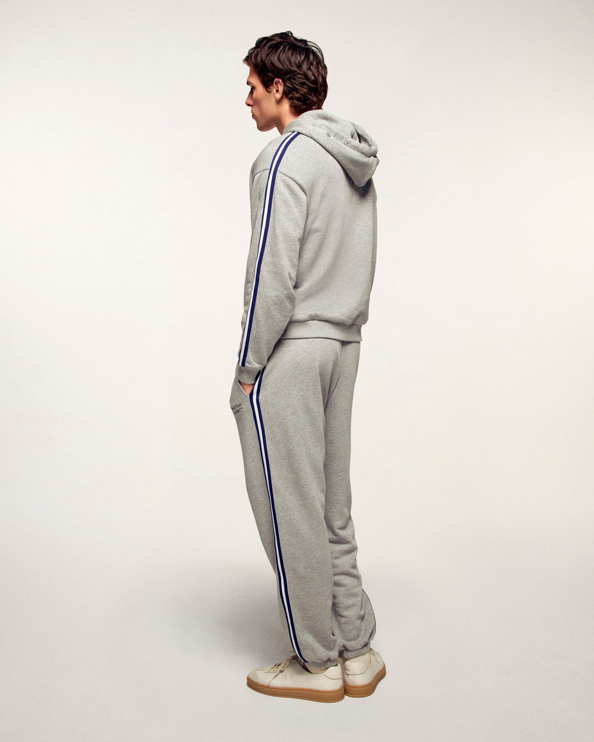 Jogging Large à Bandes et Broderies - Coton - Gris Chiné Foncé