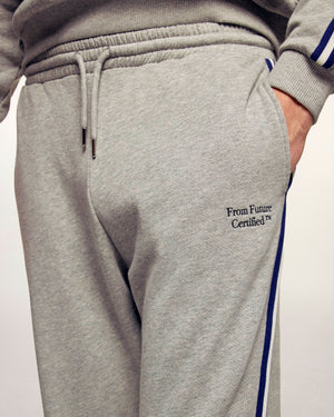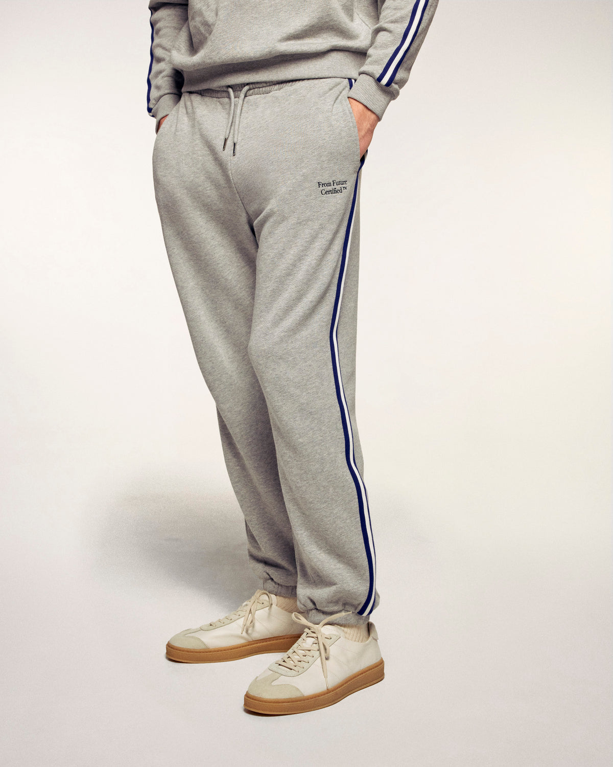 Alliant confort et style urbain, ce jogging en coton adopte une coupe large moderne. Il se distingue par ses bandes latérales et sa broderie signature "From Future Certified" réalisée au point bourdon, offrant une silhouette dynamique idéale pour un look décontracté.