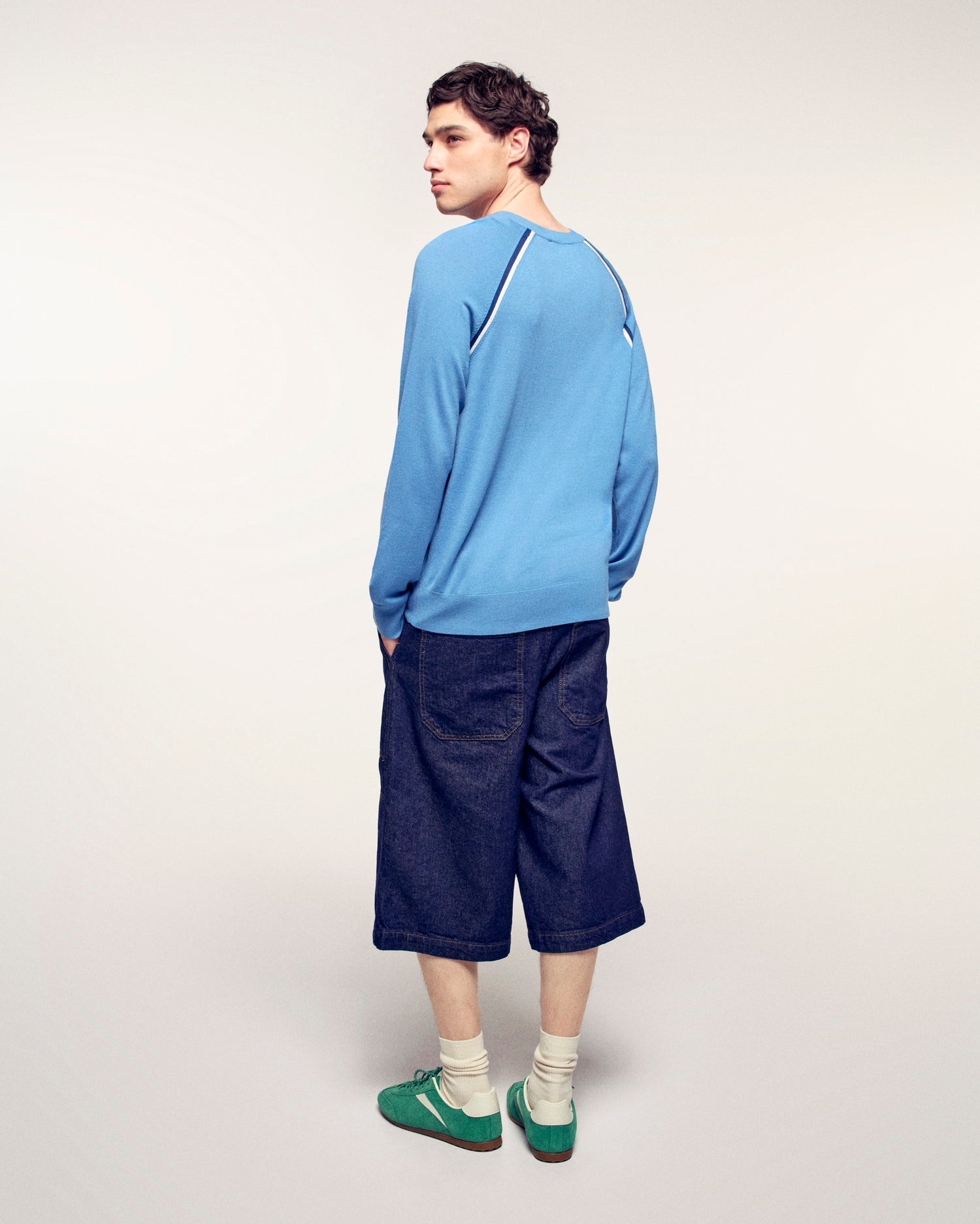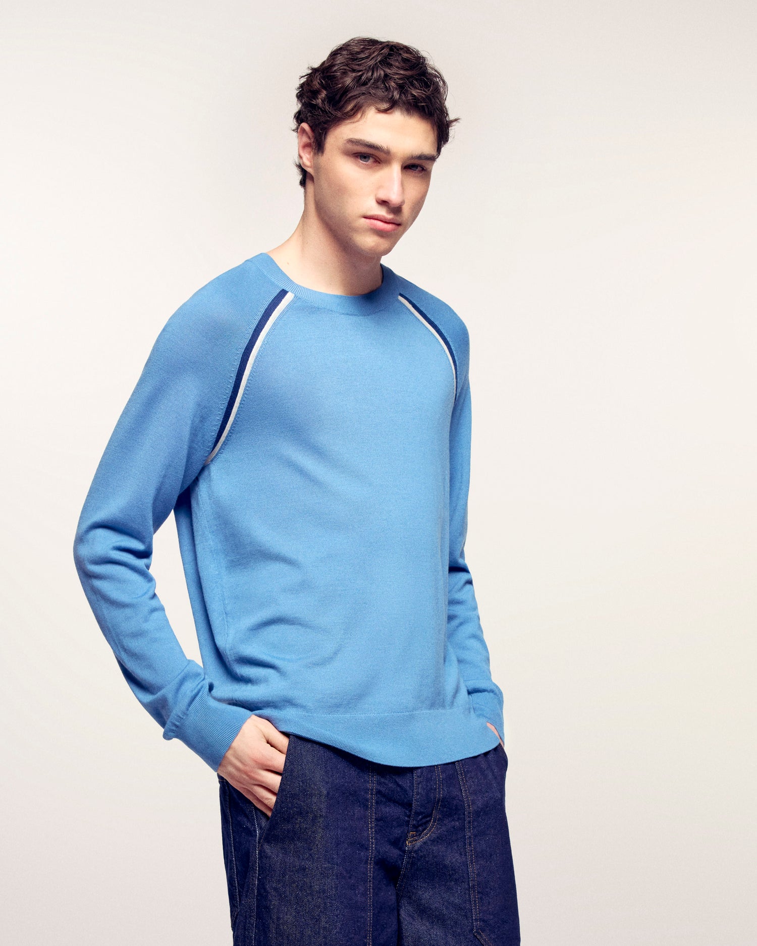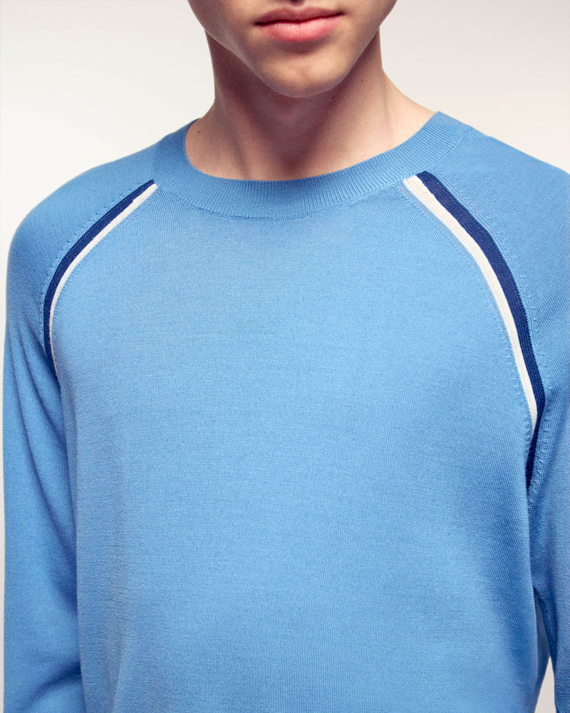 Un pull en laine mérinos extra fine. Son design est rehaussé par des bandes contrastés le long des manches et du corps, pour une allure moderne et sportive.