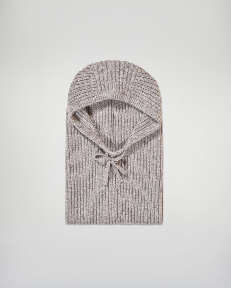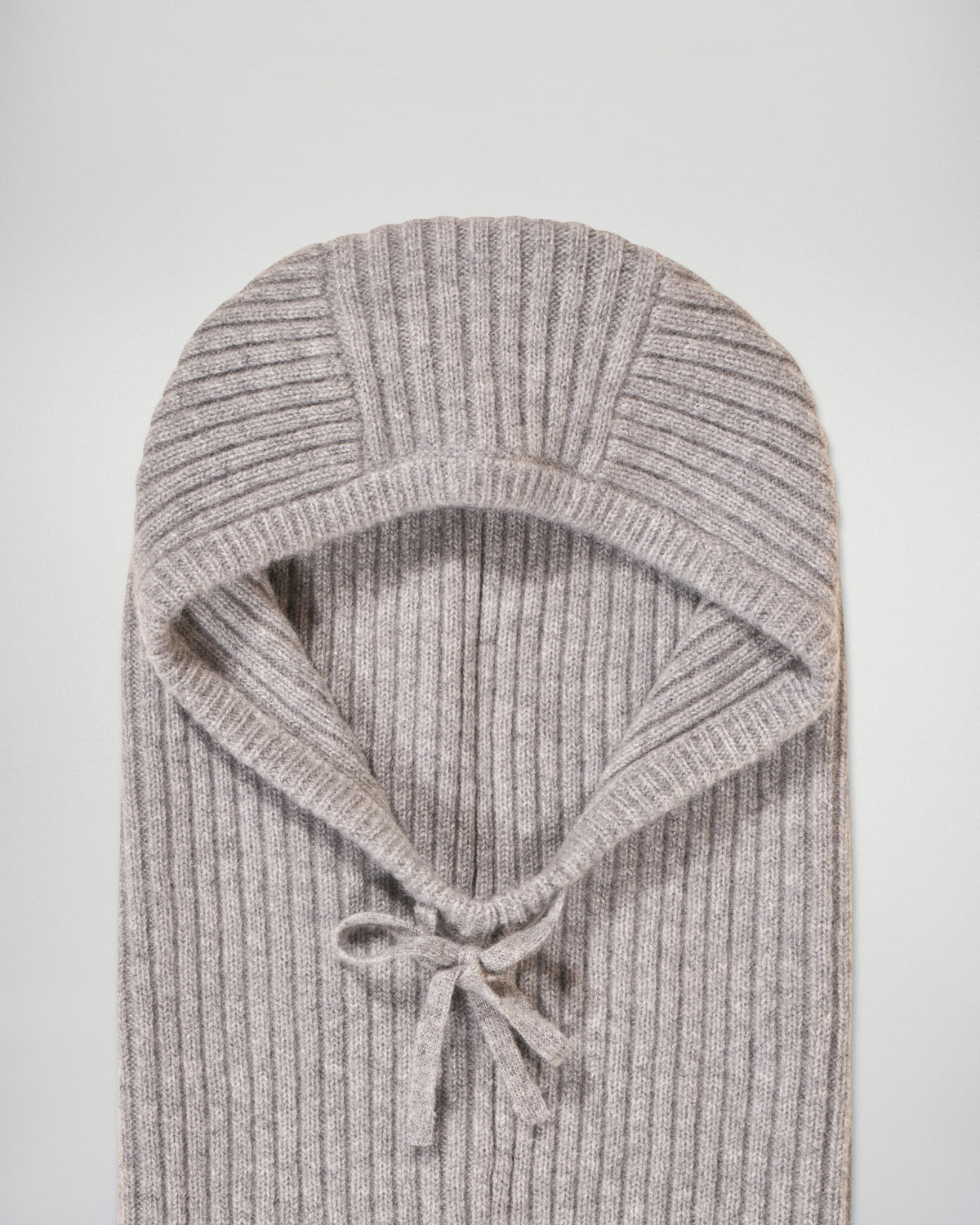 Enveloppez-vous de douceur avec cette cagoule côtelée confectionnée en cachemire. Dotée de liens de serrage pour un ajustement parfait, elle réchauffe votre silhouette avec une touche d'élégance à vos looks de saison.