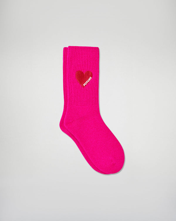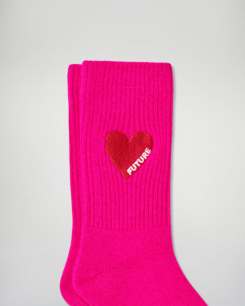 Décliné dans un colorama inédit, ces chaussettes mi-hautes apportent une touche d'éclat à votre allure. Confectionnées en cachemire, un cœur brodé "Future" se dévoile, vous invitant à rejoindre le Club ! Côtelées et ajustées aux chevilles, elles se portent sans modération et autorisent tous les styles.
