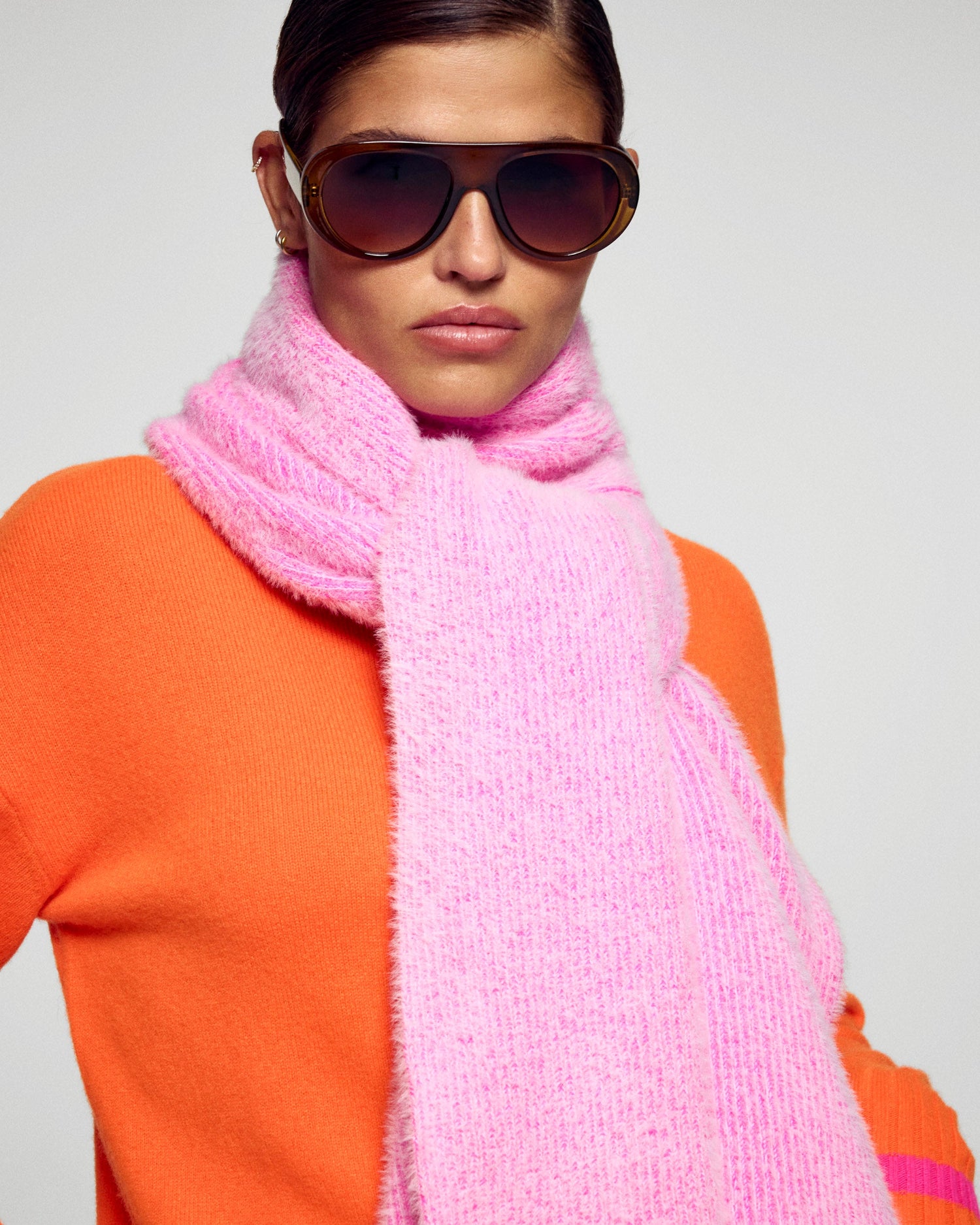 - Echarpe fluffy à franges en nylon et cachemire Femme