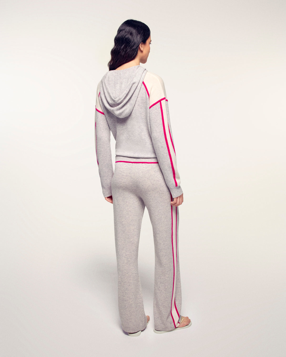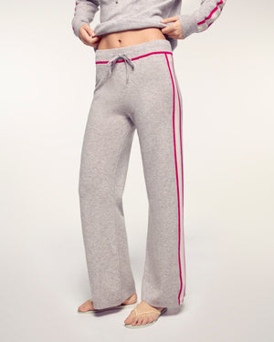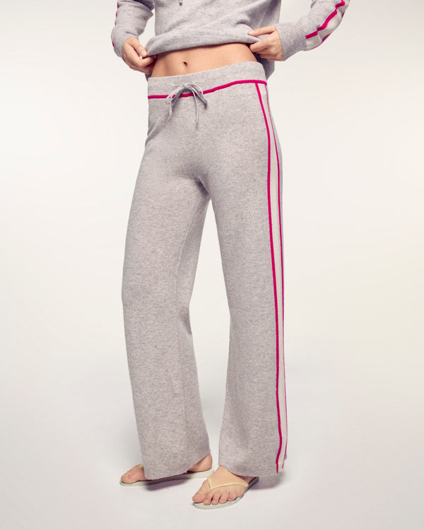 Ce jogging en cachemire 2 fils combine le confort du sportswear avec le luxe de la maille. Sa coupe droite regular et ses bandes contrastées sur les côtés allongent la silhouette et lui donnent une allure graphique et tendance.