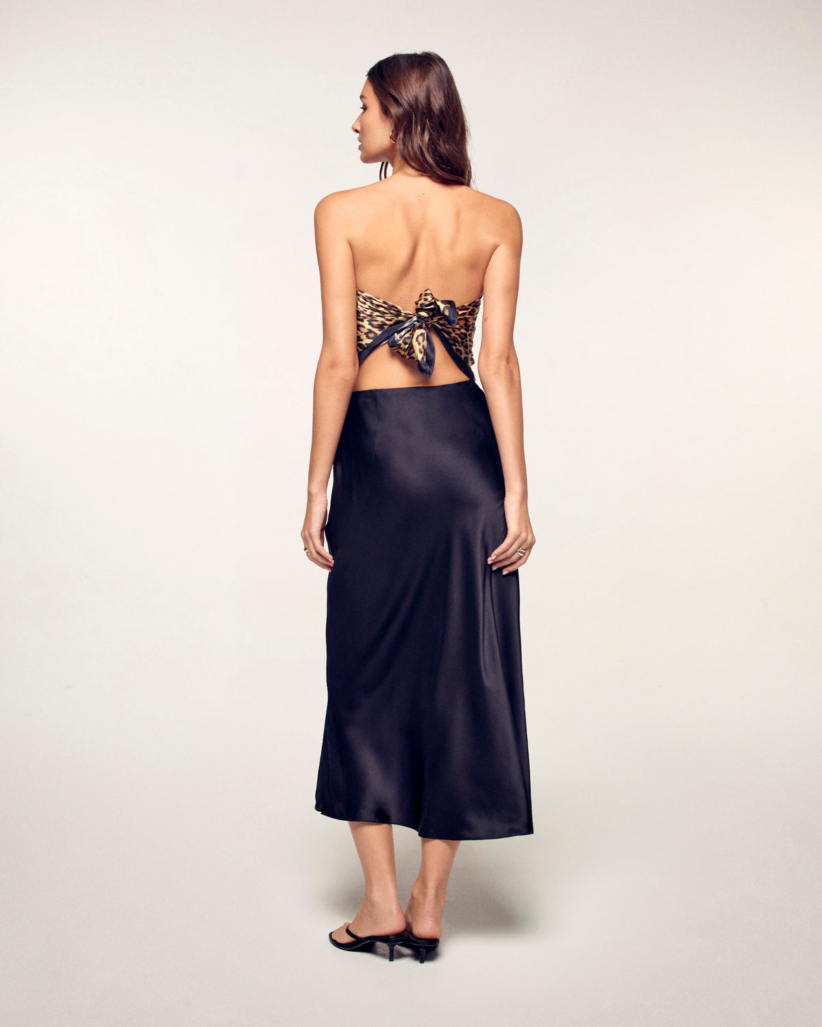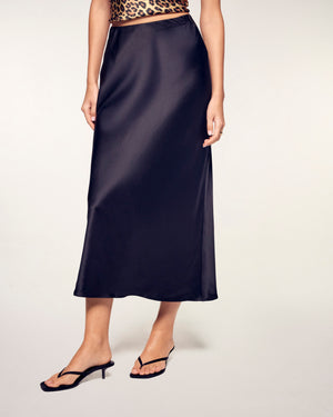 Confectionnée en satin de soie brillant et léger, la jupe mi-longue Vicky confère beaucoup d'allure. En toute élégance, elle dévoile un tombé fluide et évasé. Idéale en toutes circonstances, elle s'associe à un top structuré ou une chemise satinée.