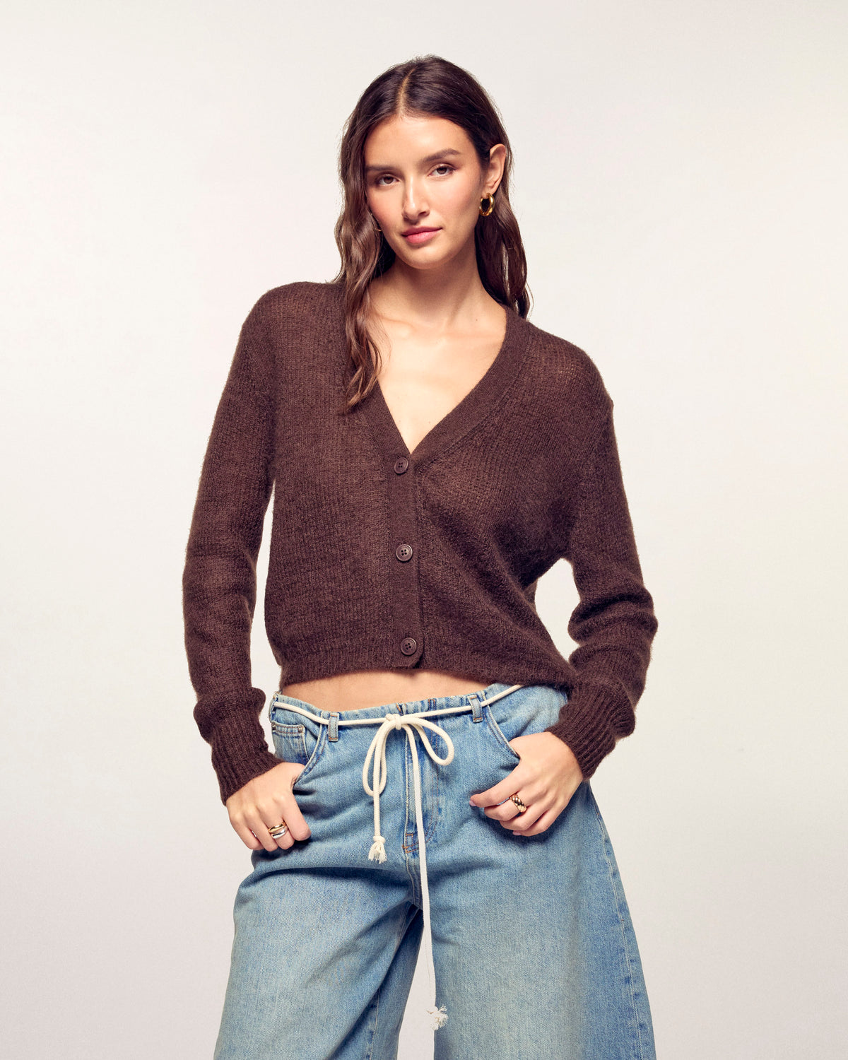 - Pull cardigan à l'aspect duveteux
