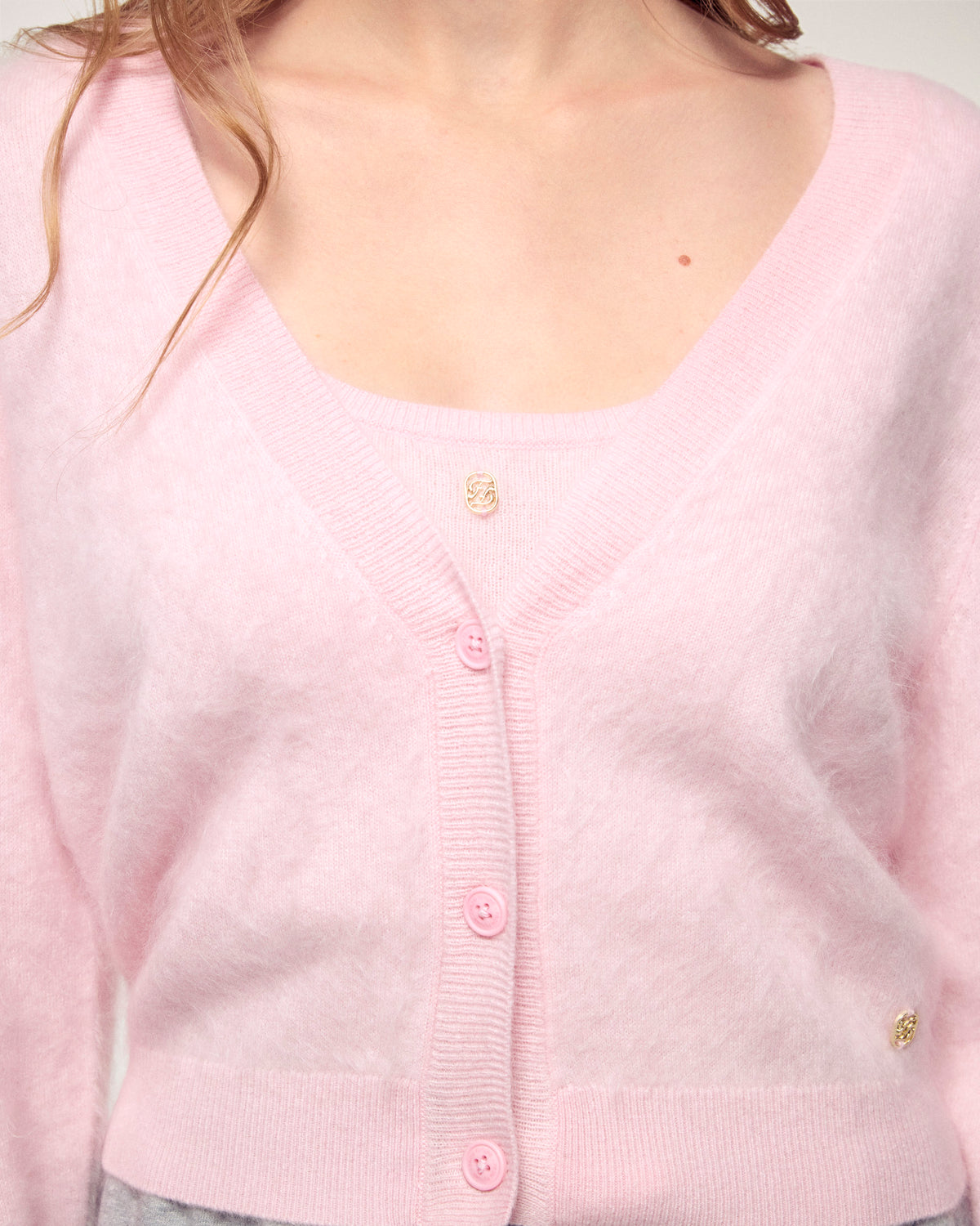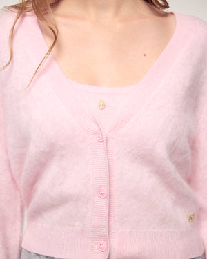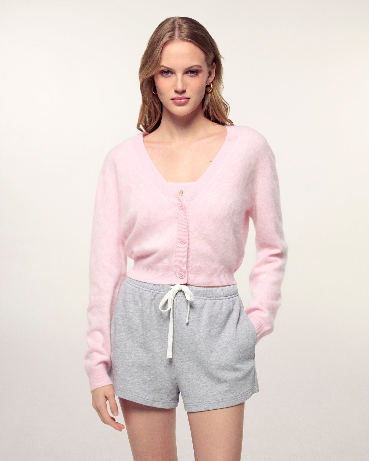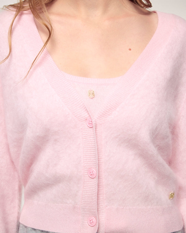 Pull Cardigan Cachemire Brossé - 100% Cachemire - Vérifié GCS - Cloudy Pink