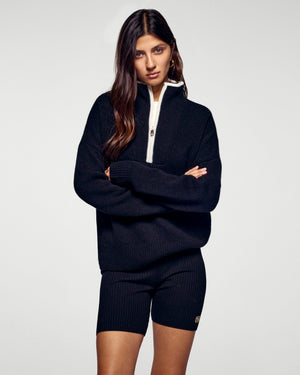 Pull Pull Col Camionneur Liserés Contrastés - 100% Cachemire - Vérifié GCS - Noir