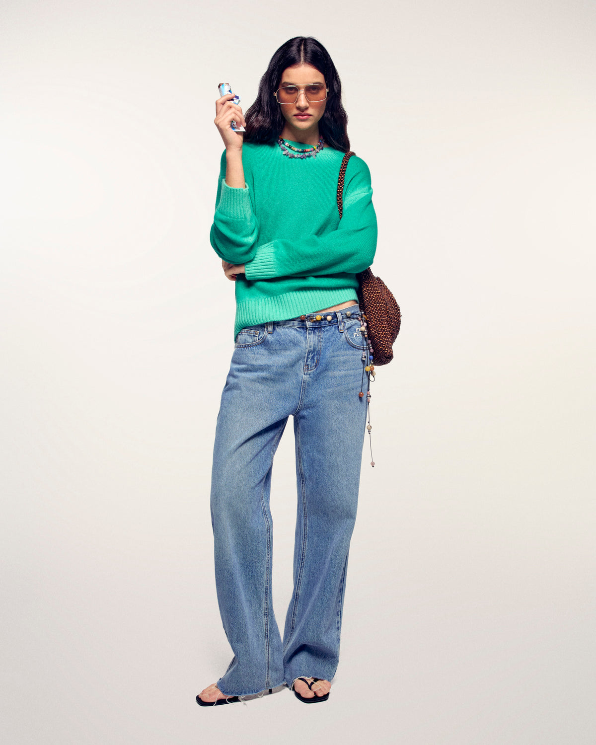 Une pièce vibrante et audacieuse qui capte la lumière pour dynamiser votre allure. Ce pull en cachemire se distingue par son coloris néon au fini délavé sur les bords, offrant un aspect vintage et unique, complété par une plaque métallique signature pour une touche de sophistication.
