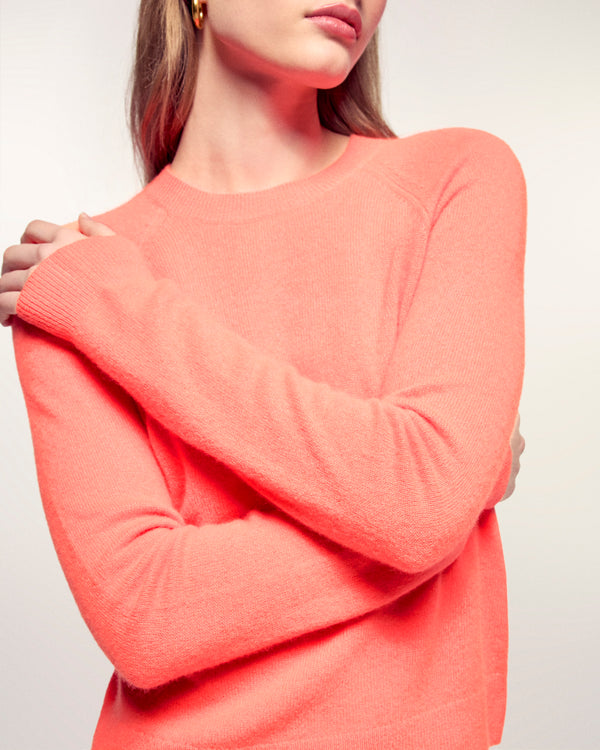 Pull Pull Col Rond - 100% Cachemire Léger - Vérifié GCS - Fire Orange