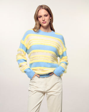 Pull Pull Col Rond Oversize Bandes Brossé - Cachemire Polyamide - Multico