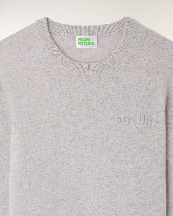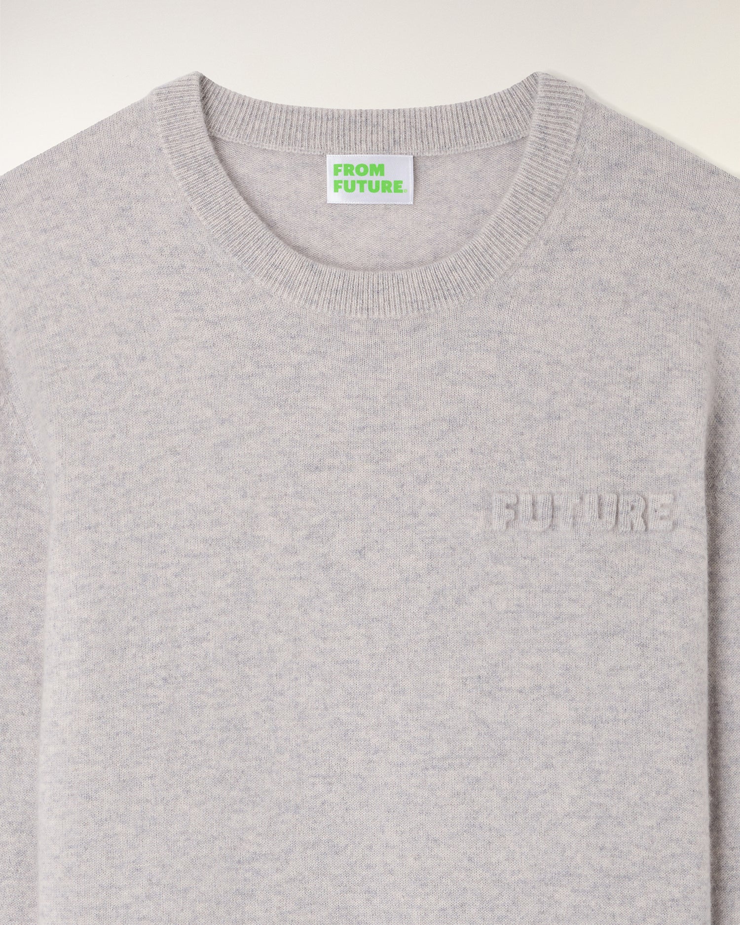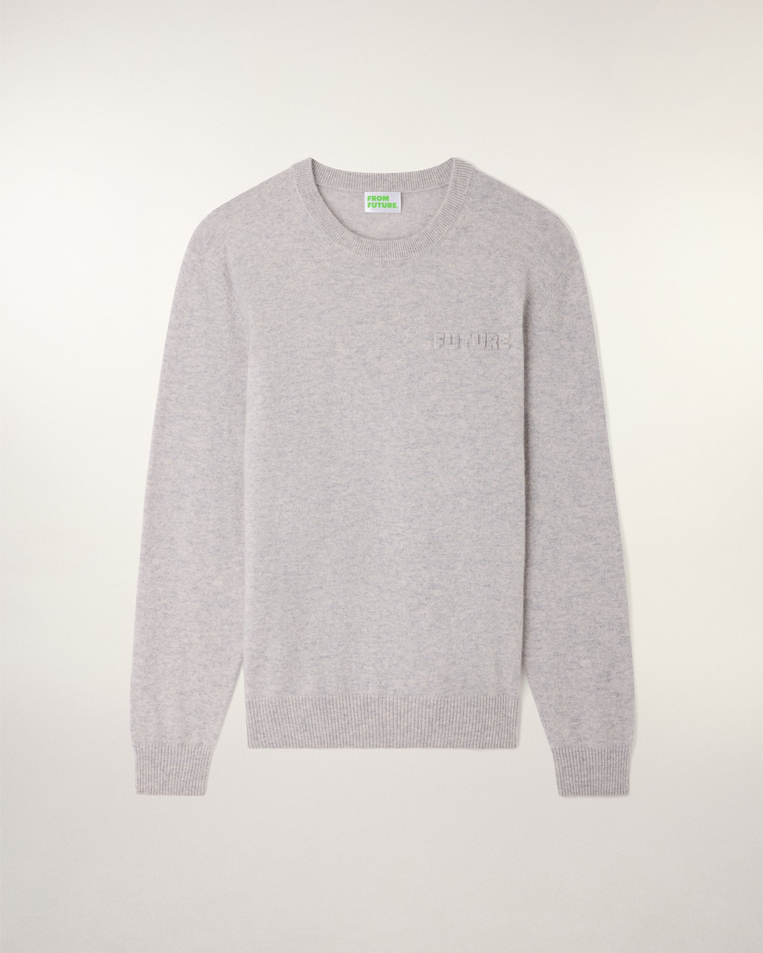 Une pièce moderne qui se distingue par son travail de texture et son visuel fort. Ce pull en cachemire arbore un imprimé "Future" à l'effet 3D captivant, offrant une touche de relief contemporaine à un classique du vestiaire masculin.