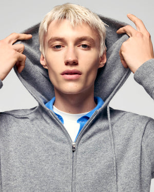 Pull Hoodie Zippé Basique - 100% Cachemire - Vérifié GCS - Gris Chiné Foncé