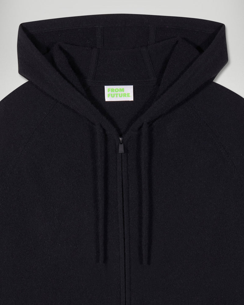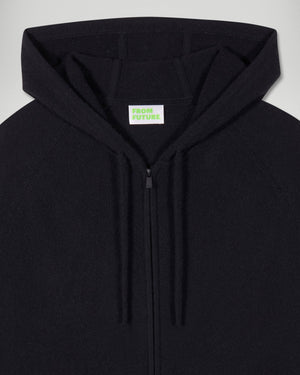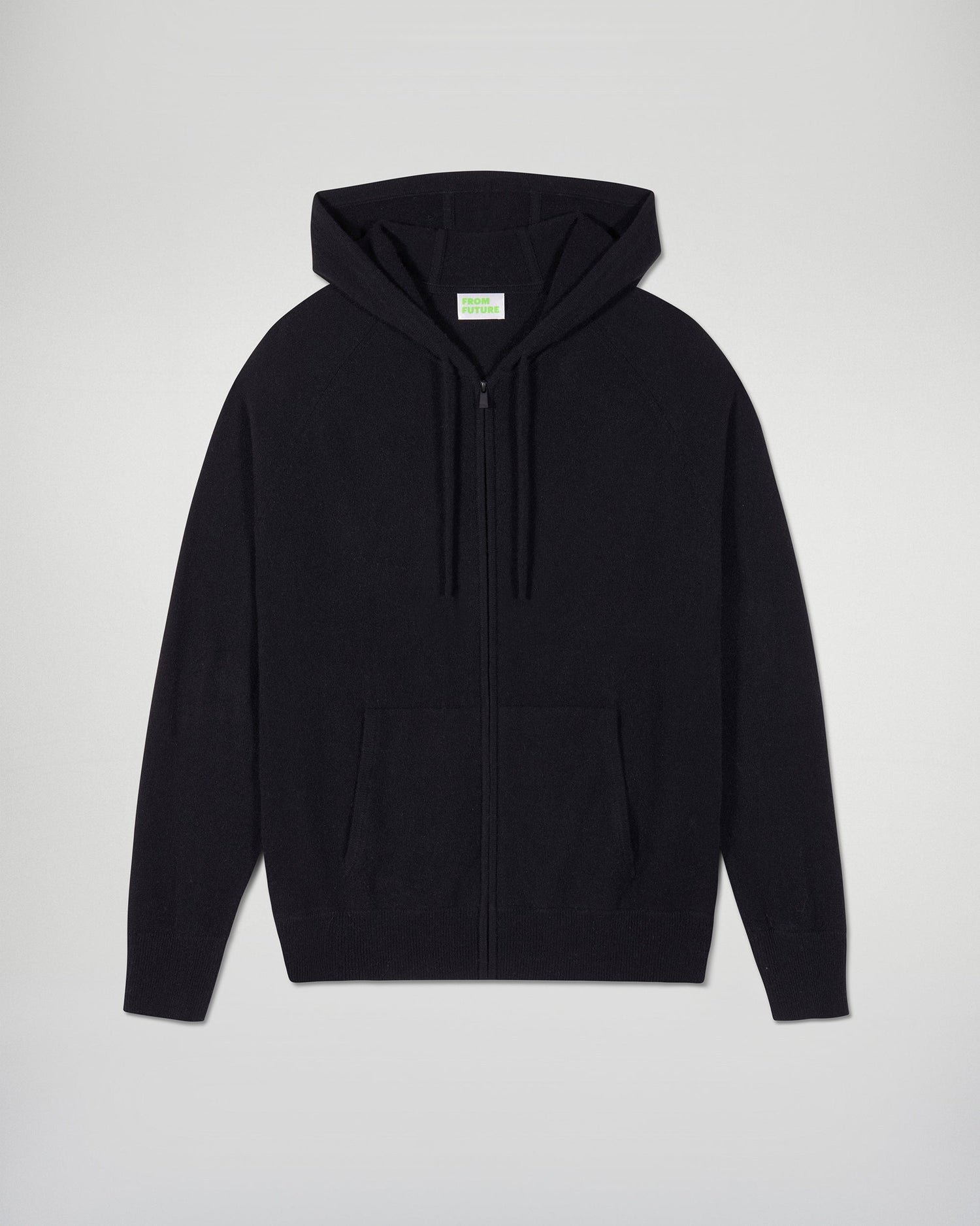 Pull Hoodie Zippé Basique - 100% Cachemire - Vérifié GCS - Noir