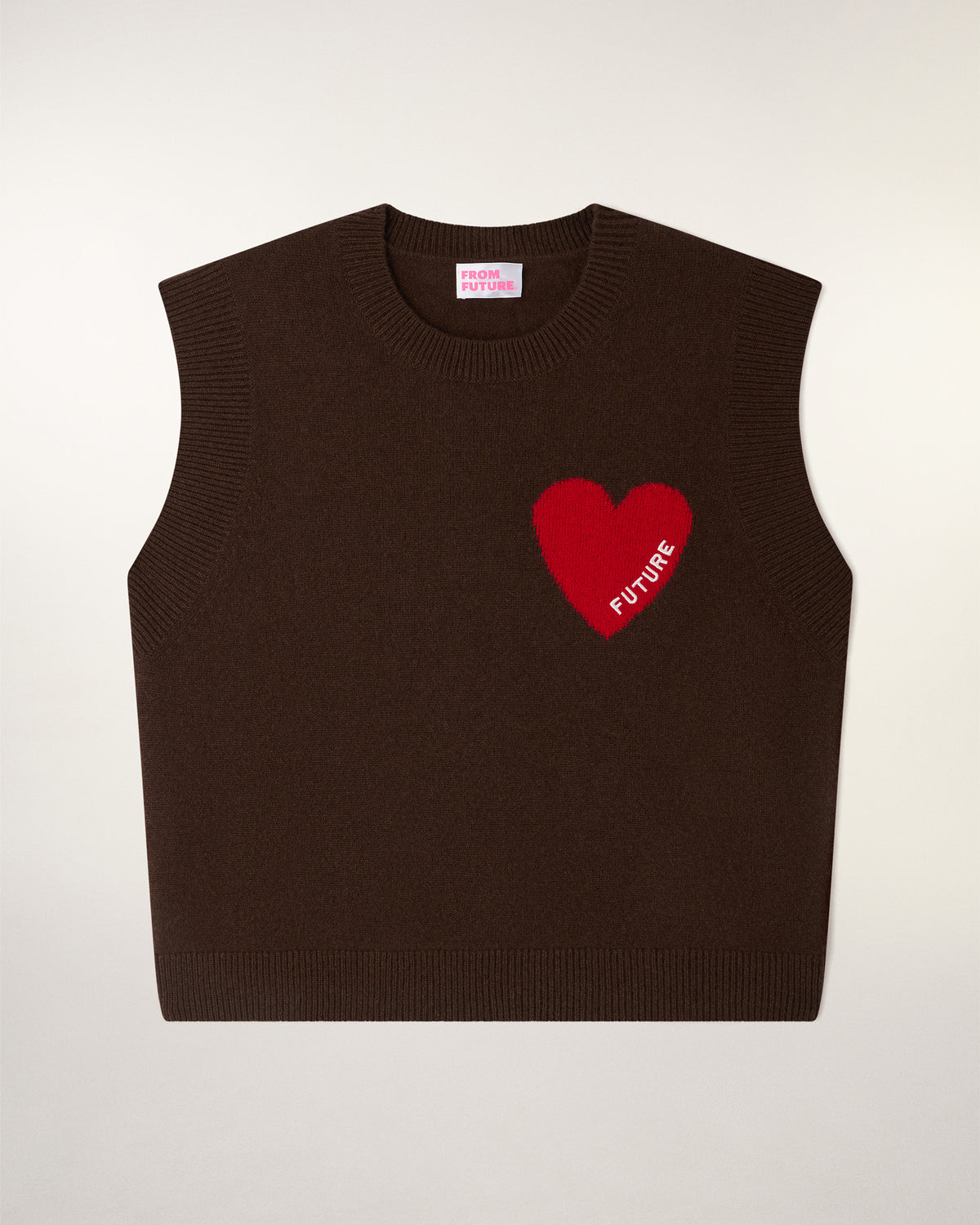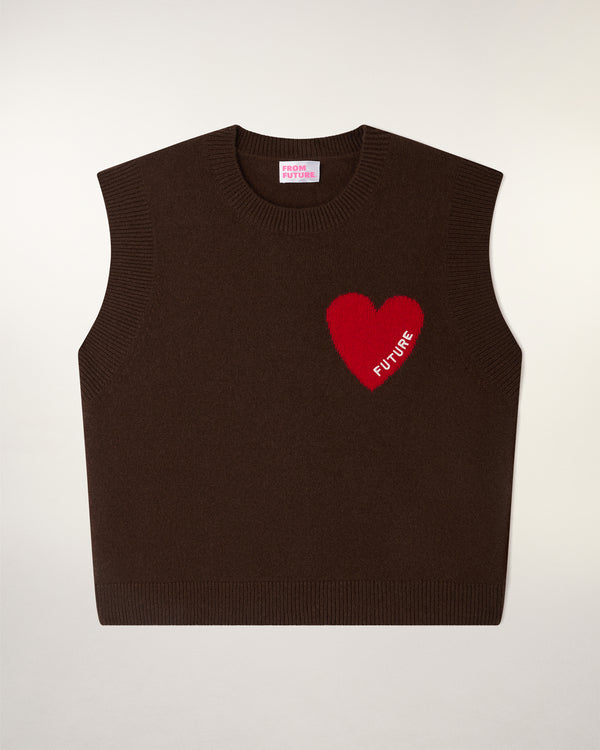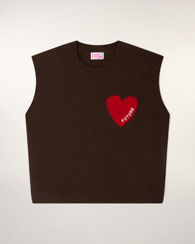 Mêlant légèreté et douceur, ce pull sans manches court et oversize 100% cachemire est muni d'un col rond. Le détail signature ? Un cœur rouge brodé "FUTURE" se dévoile sur la poitrine. Portez-le seul ou glissé sur une chemise pour un look sophistiqué.