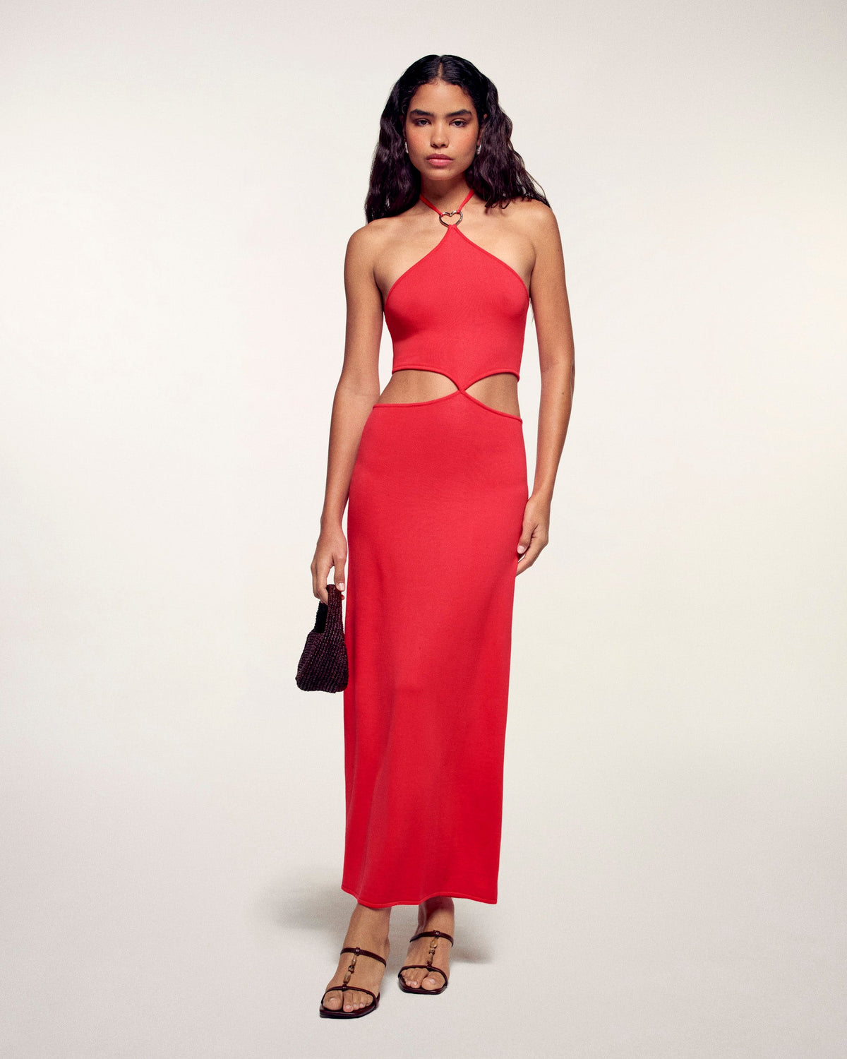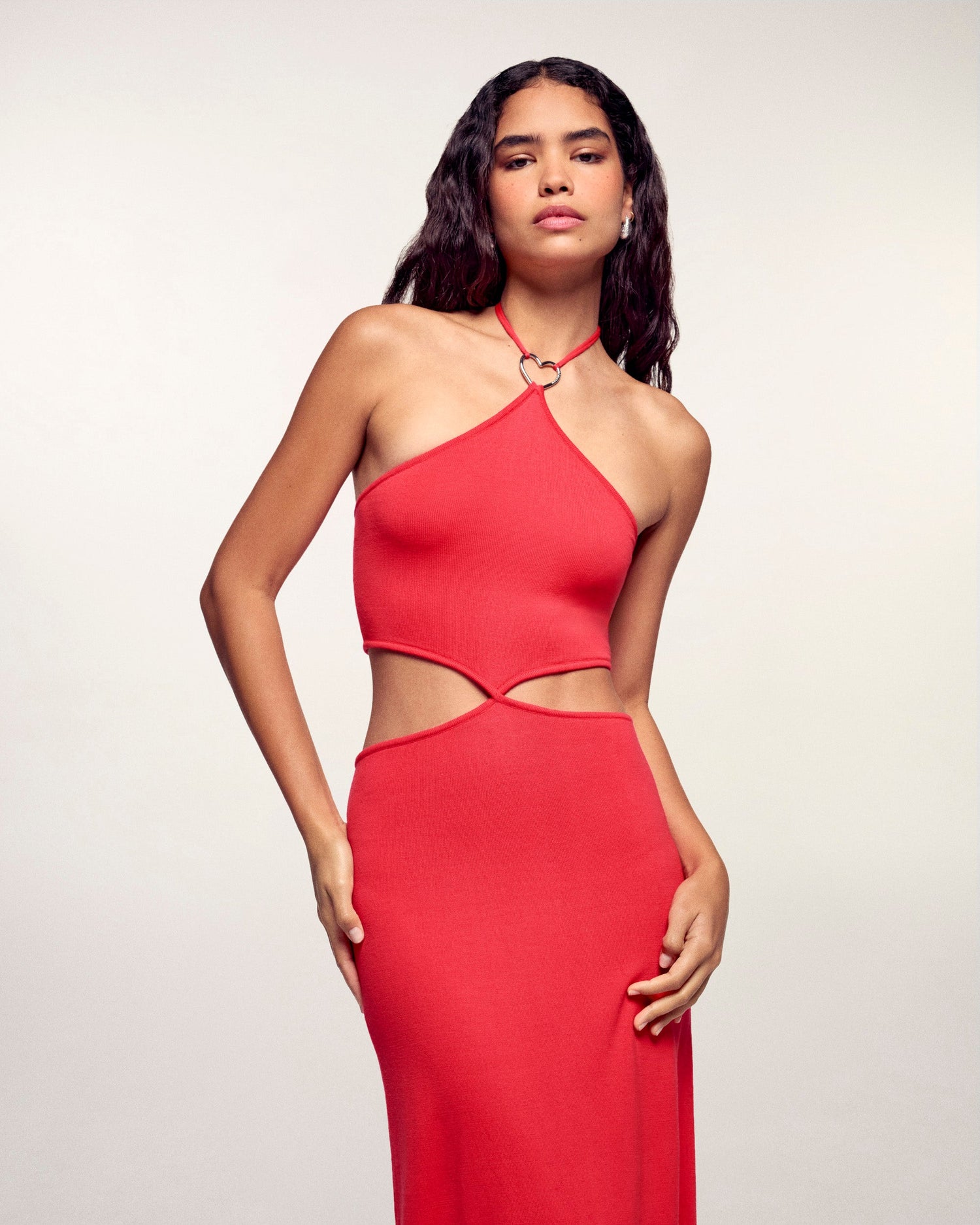 Audacieuse et romantique, cette robe longue en maille s'impose comme l'indispensable de votre vestiaire estival. Confectionnée en pure laine mérinos extrafine, elle se distingue par ses détails de boucles bijoux en métal argenté en forme de cœur, révélant des découpes ajourées modernes à la taille. Une silhouette solaire à la fois libre et sophistiquée, idéale pour une élégance sans effort lors des beaux jours.